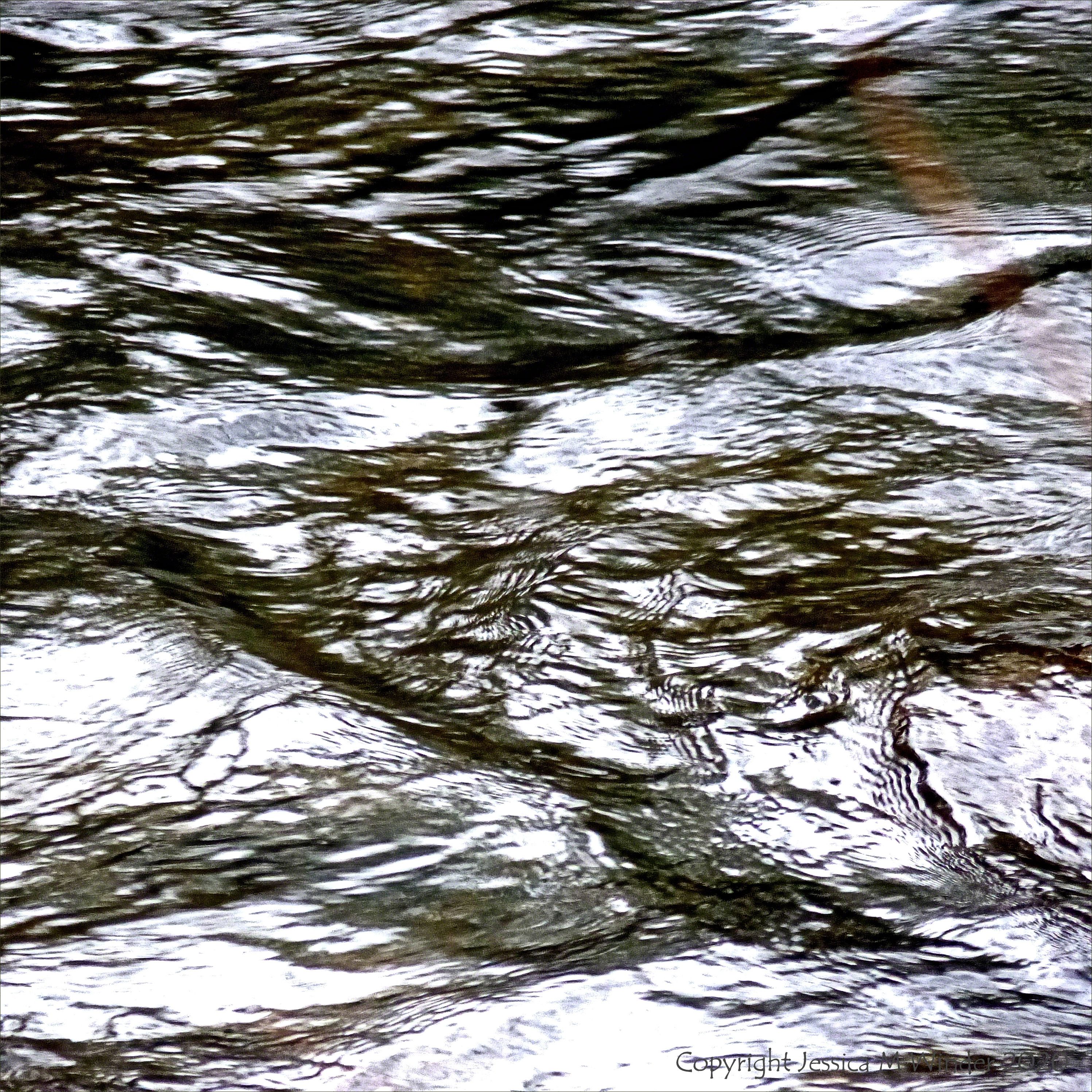 Fast water flowing in the Afon Llwyd at Pontypool Park in South Wales, November 2019.
