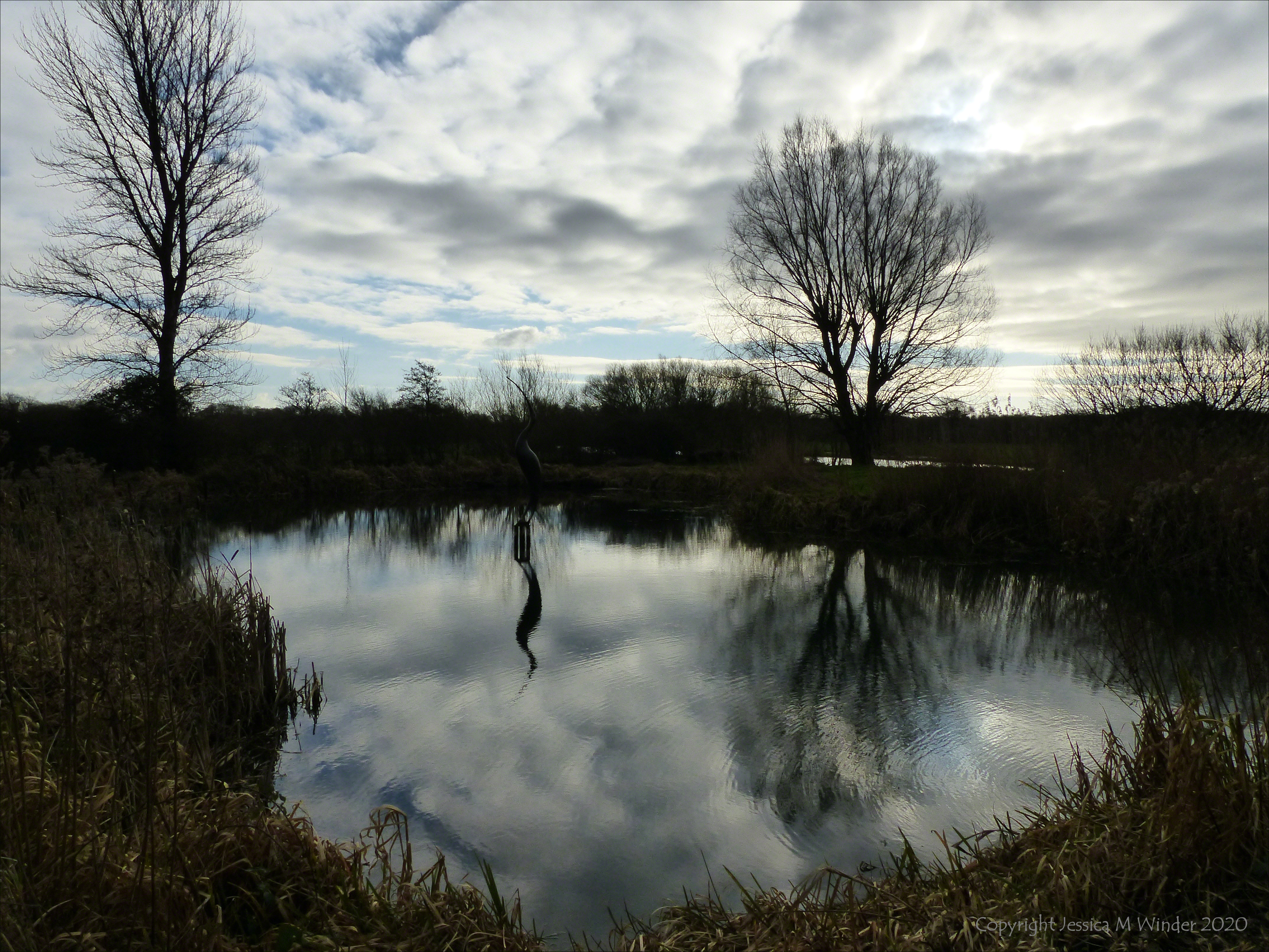 Retreat Reflections 1 Reflections of trees on the pool water by The Retreat at Sculpture by the Lakes in Dorset, January 2020.