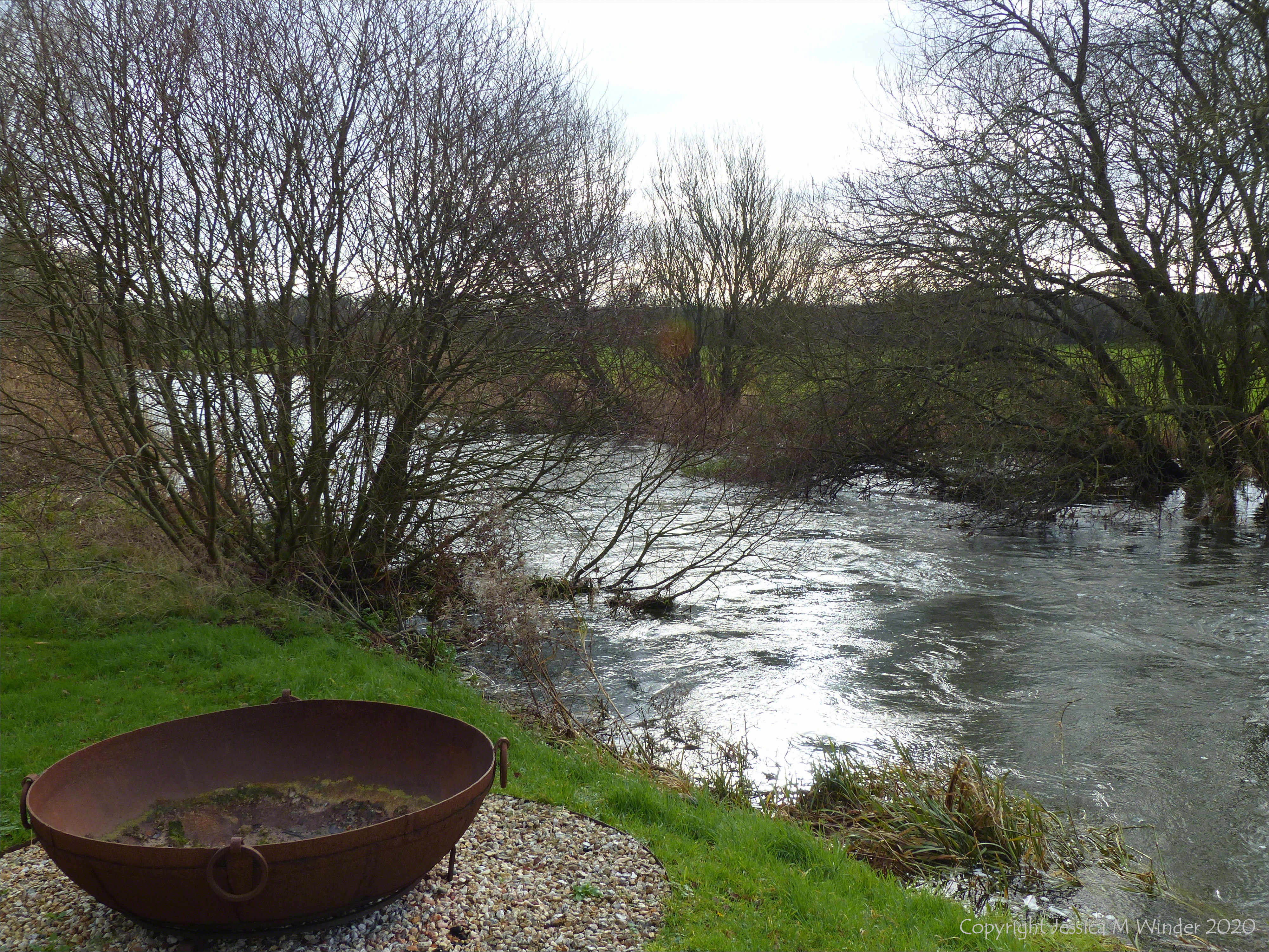 The winter River Frome from The Retreat at Sculpture by the Lakes in Dorset – context shot for detailed water texture photographs.