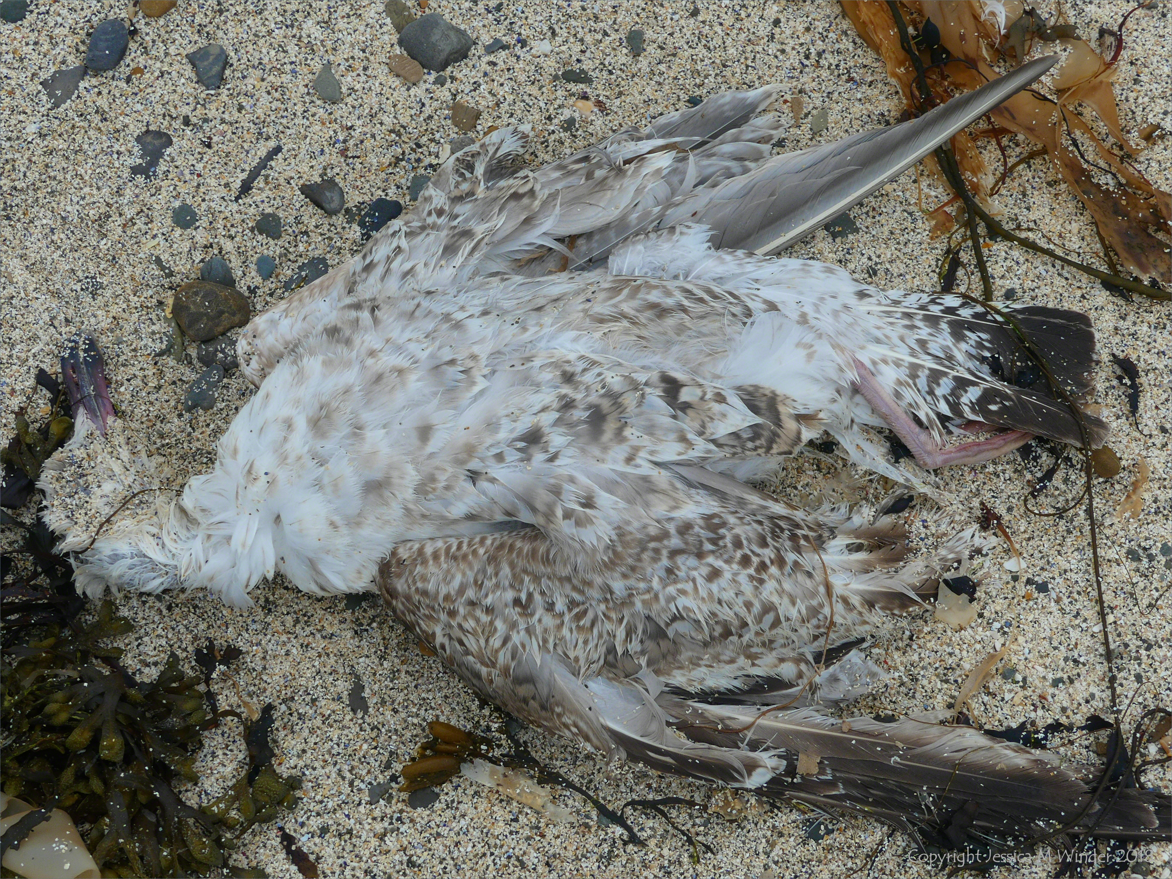 Birsay 8 – Dead bird (young gull?) on the beach at Birsay in Orkney, June 2018.