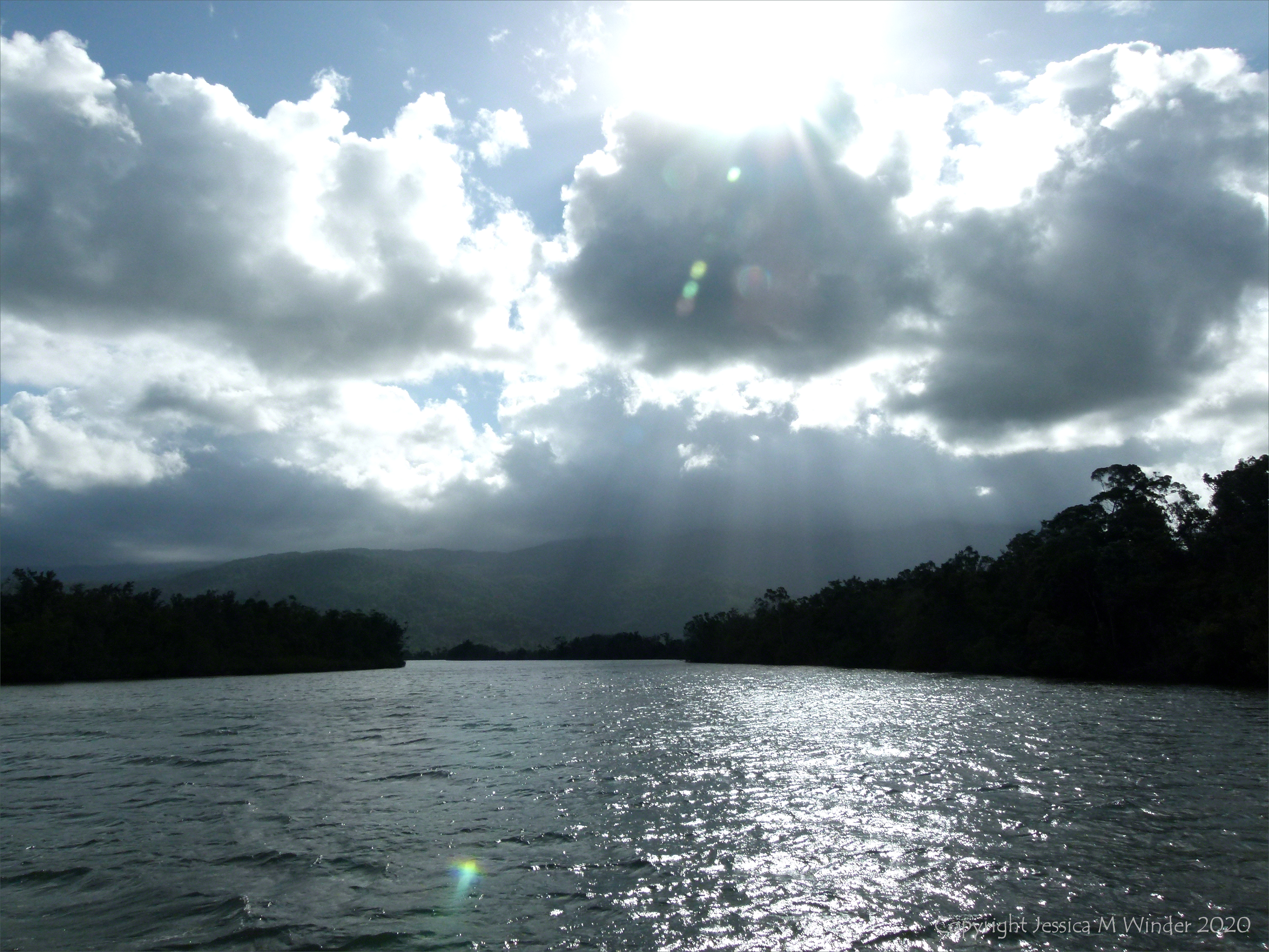 Returning upstream at dusk on the Mulgrave River estuary in Queensland, Australia.