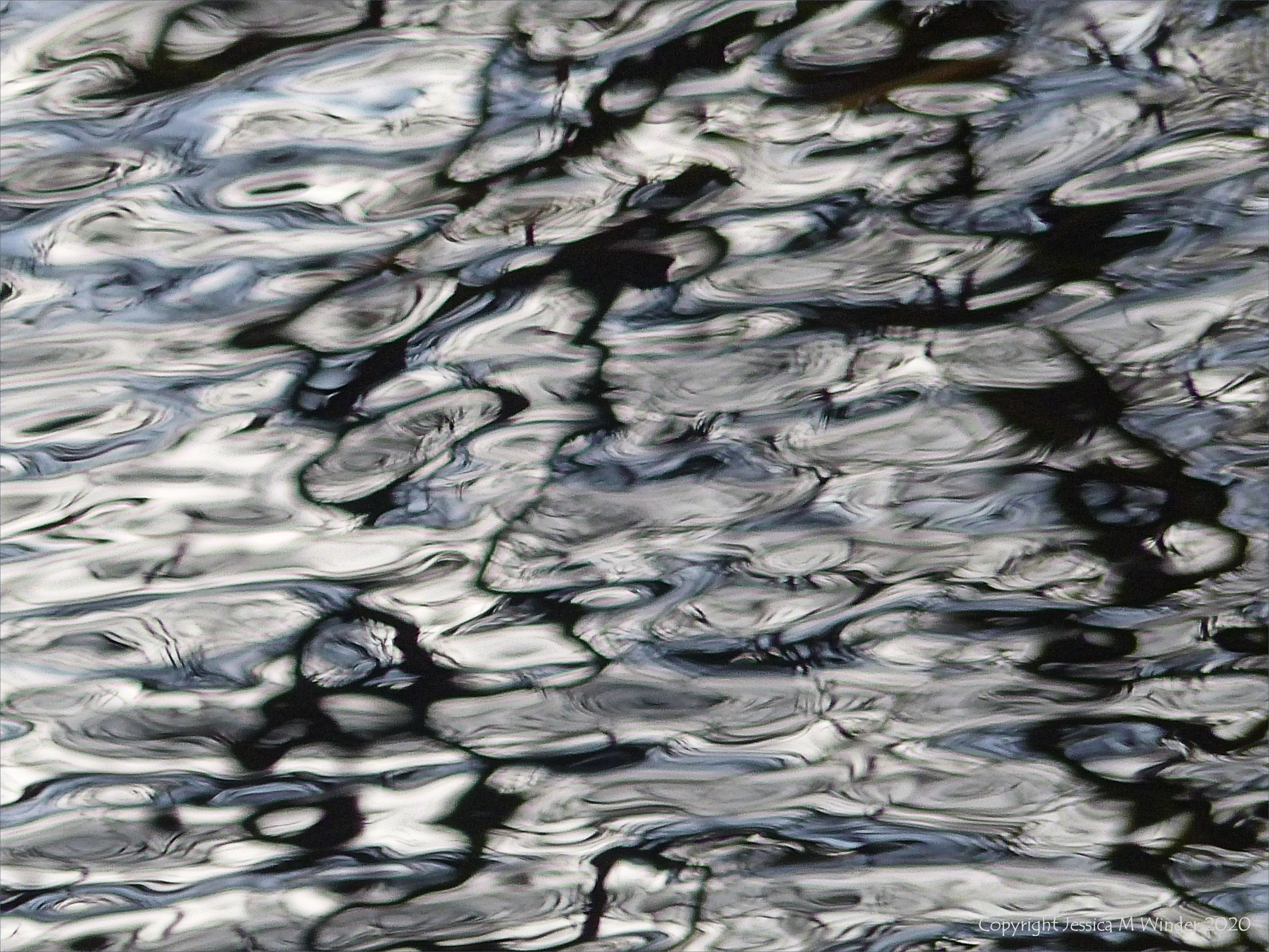 River Bank Reflections Frome SBTL 3 Reflections in water on a flooded riverbank of the Frome at Sculpture by the Lakes in Dorset, January 2020