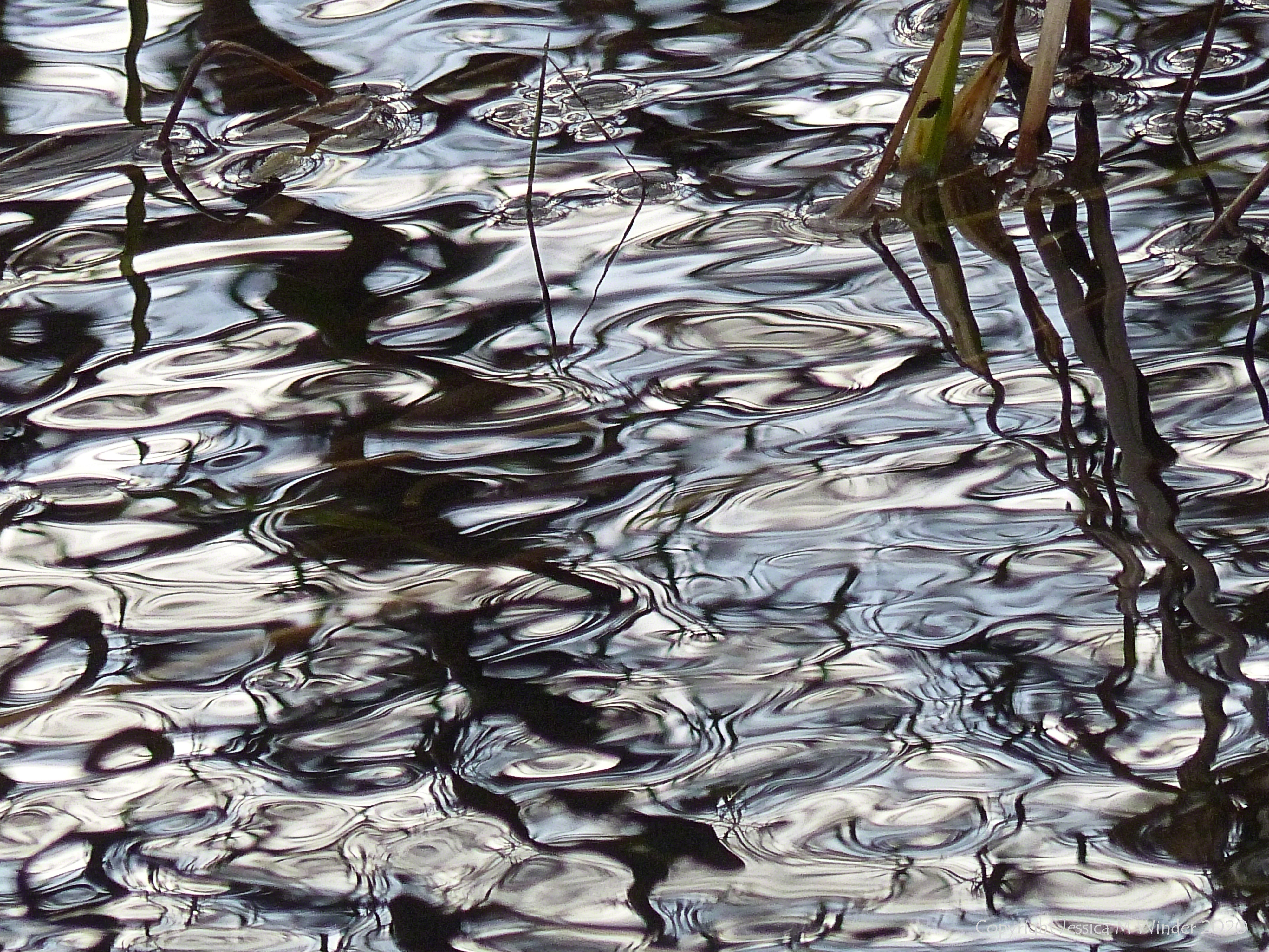 River Bank Reflections Frome SBTL 5 Reflections in water on a flooded riverbank of the Frome at Sculpture by the Lakes in Dorset, January 2020