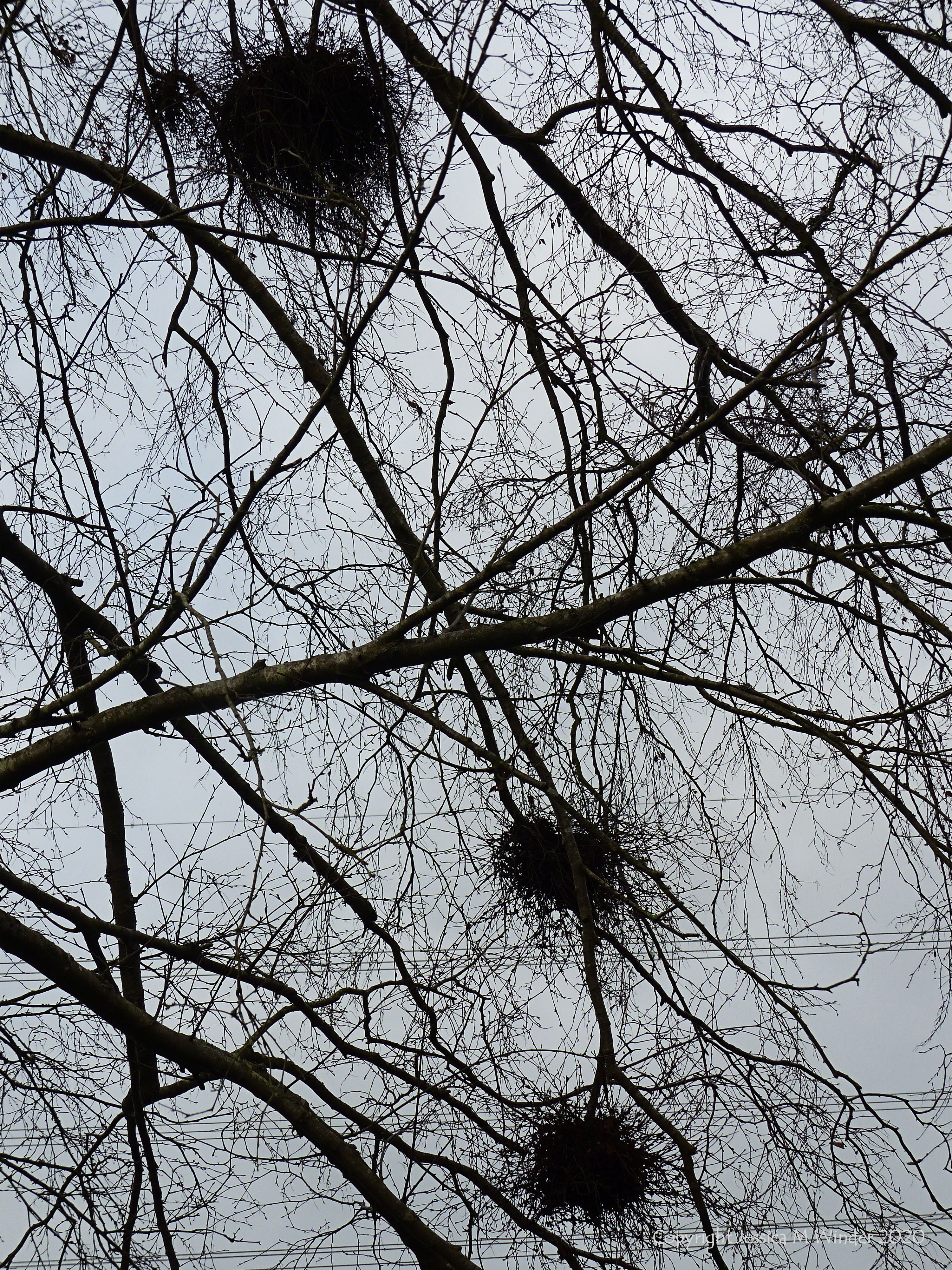 Tree Tracery SBTL 4 Witches Broom galls on a bare tree at Sculpture by the Lakes in Dorset January 2020