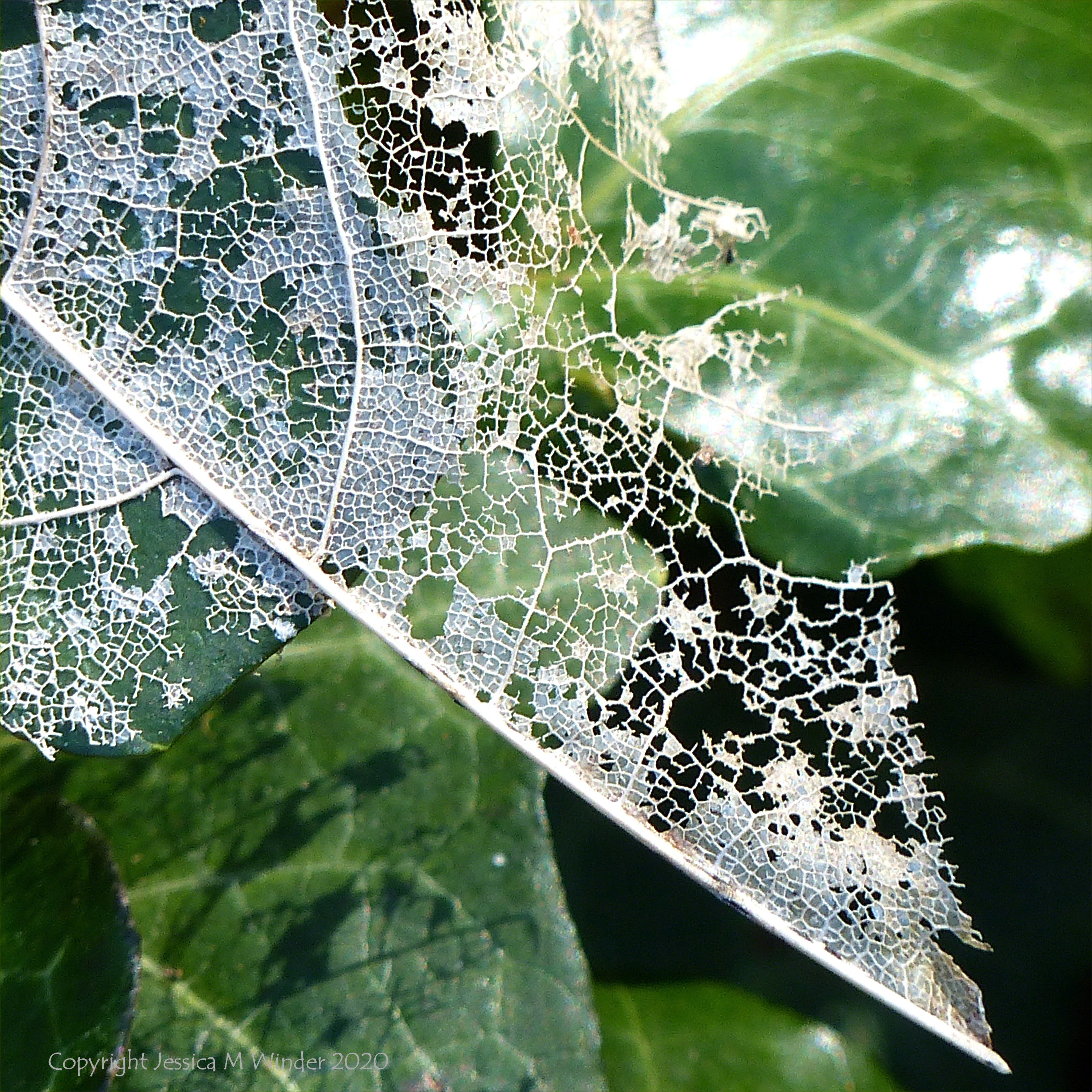 White skeletonised leaves