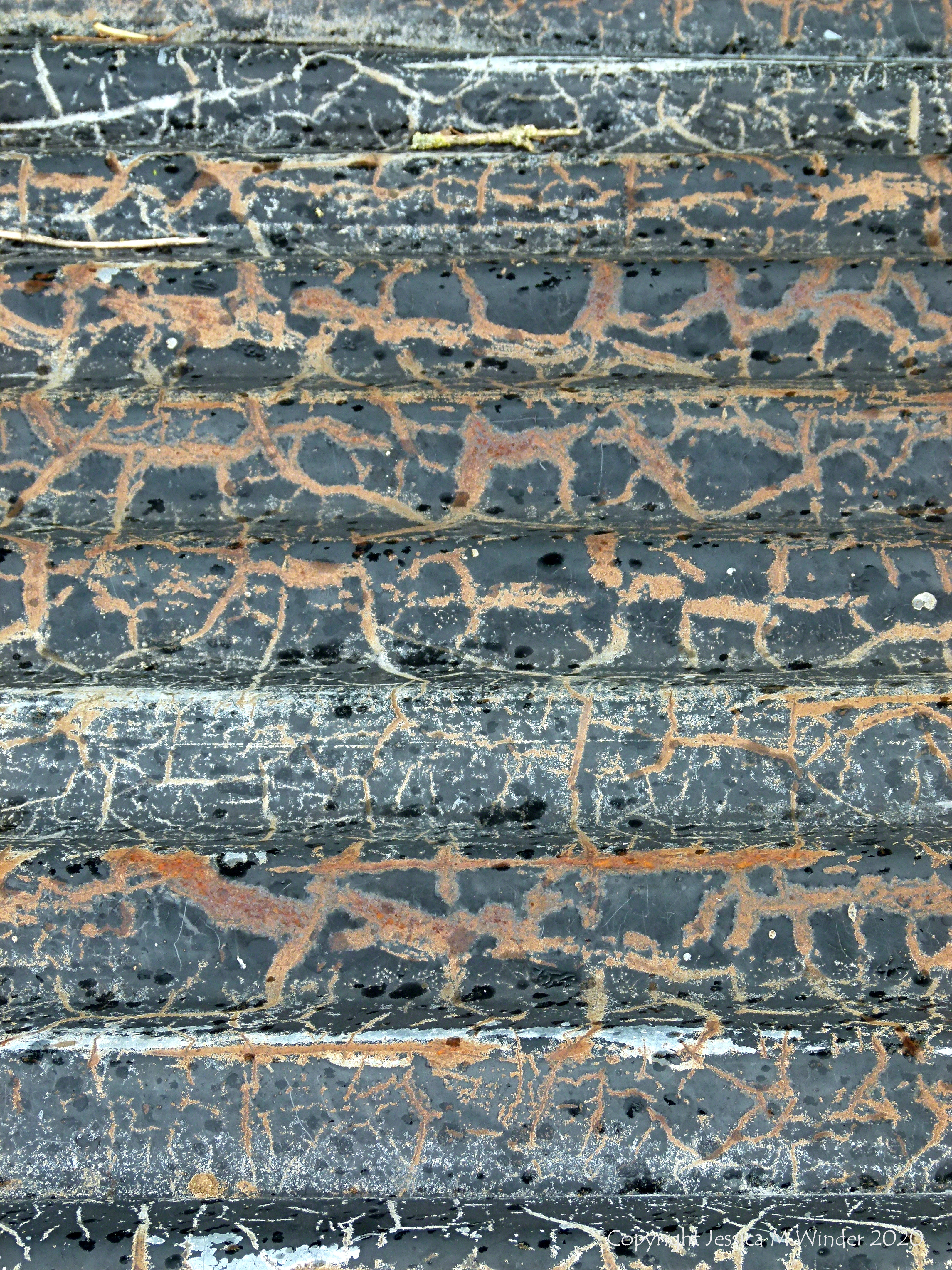 Patterns on weathering corrugated iron