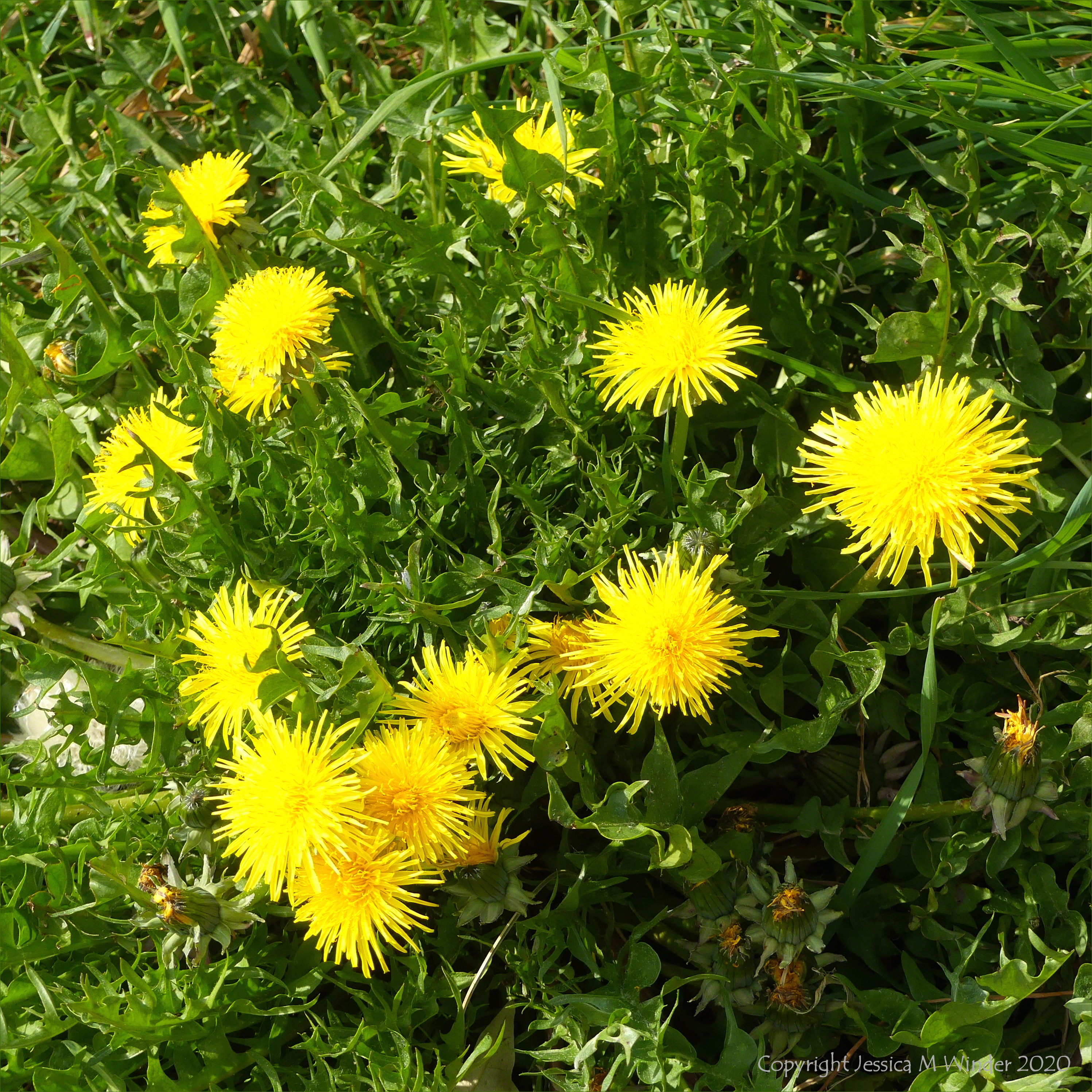 A common British wild flower, the dandelion may be a weed but it is also bright and beautiful and cheers you up in this sunny spring of lockdown because of the Covid 19 in Charlton Down, Dorset, England April 2020.