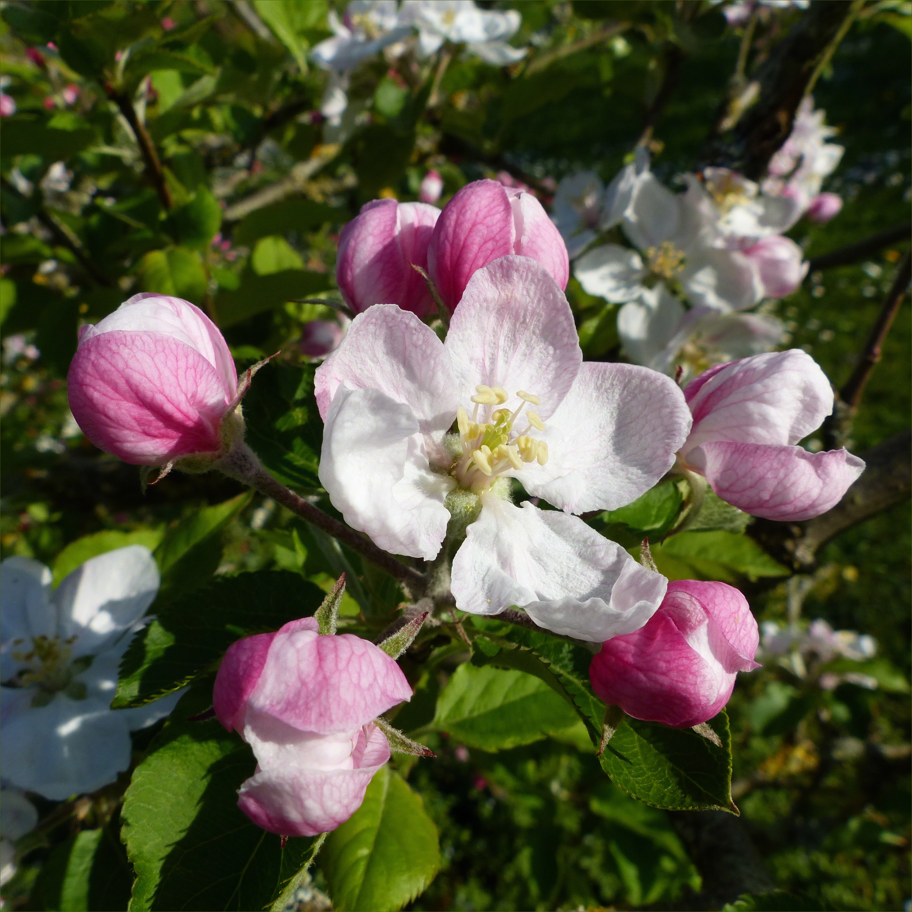 Apple blossoms in the community orchard at Charlton Down in Dorset, photographed during the permitted daily walk of the coronavirus lockdown, April 2020