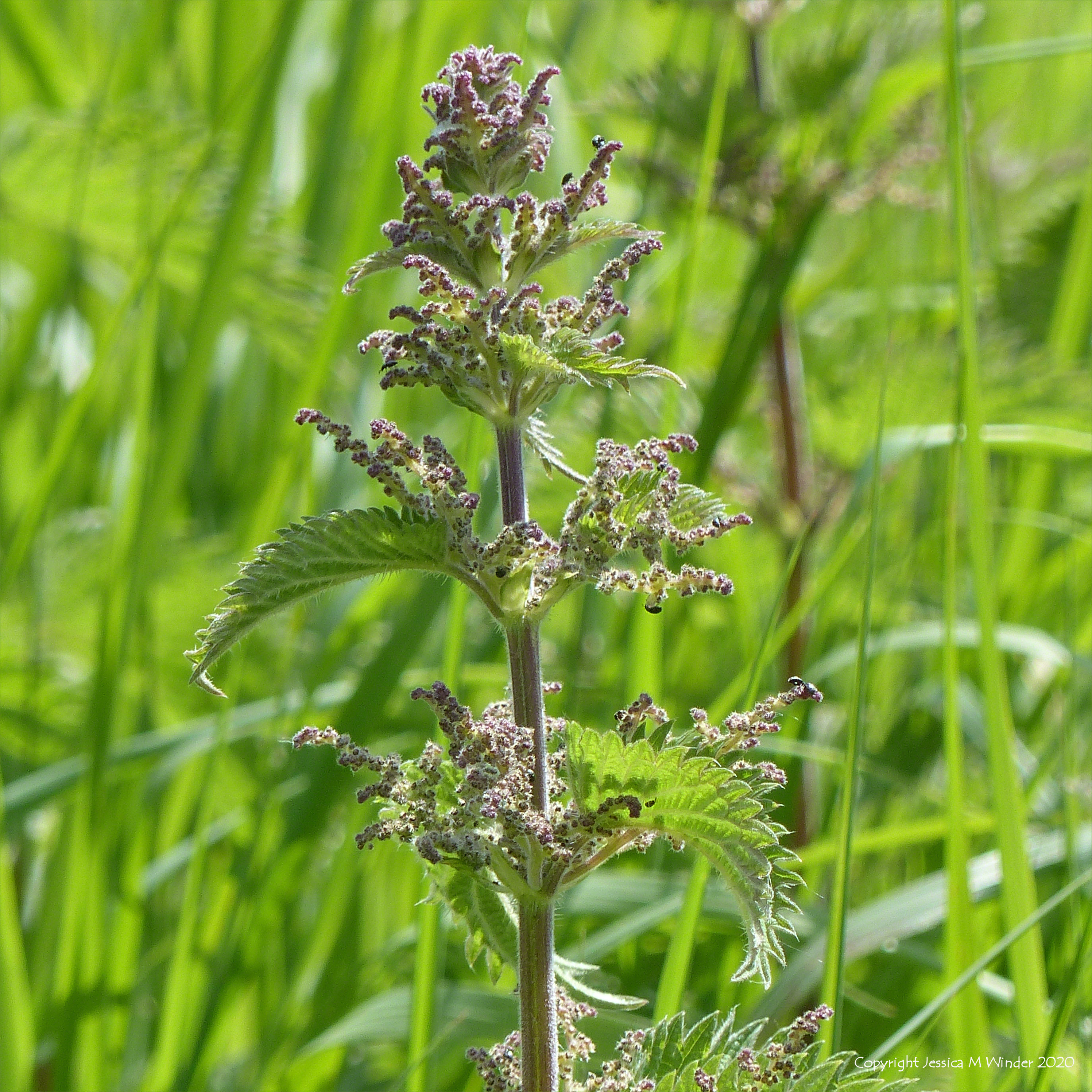Flowering stinging nettle at Charlton Down Nature Area in Dorset, photographed while on a daily walk during the coronavirus lockdown May 2020.