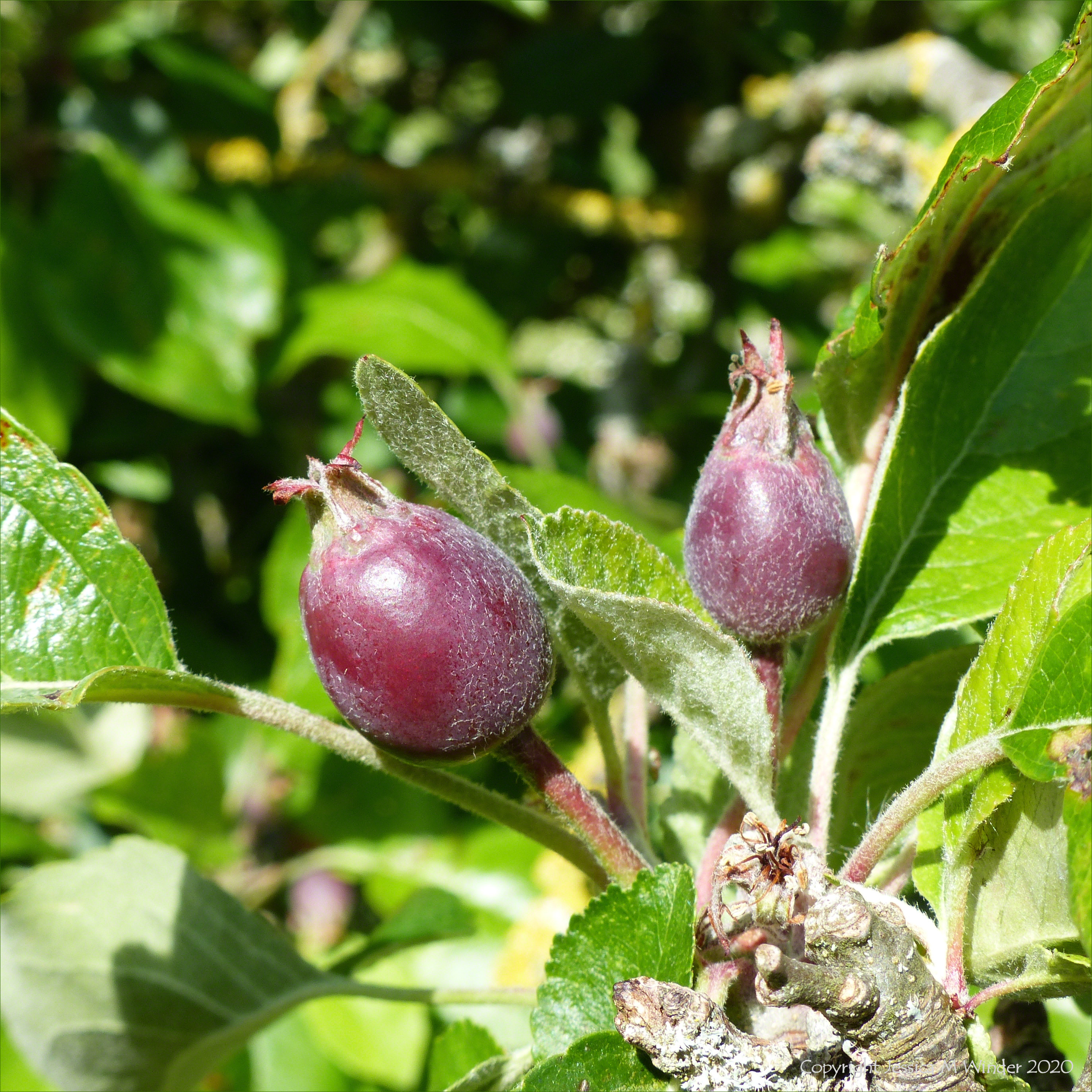 Daily Walk 59.12 Small apples growing on the trees in the Community Orchard at Charlton Down in Dorset May 2020