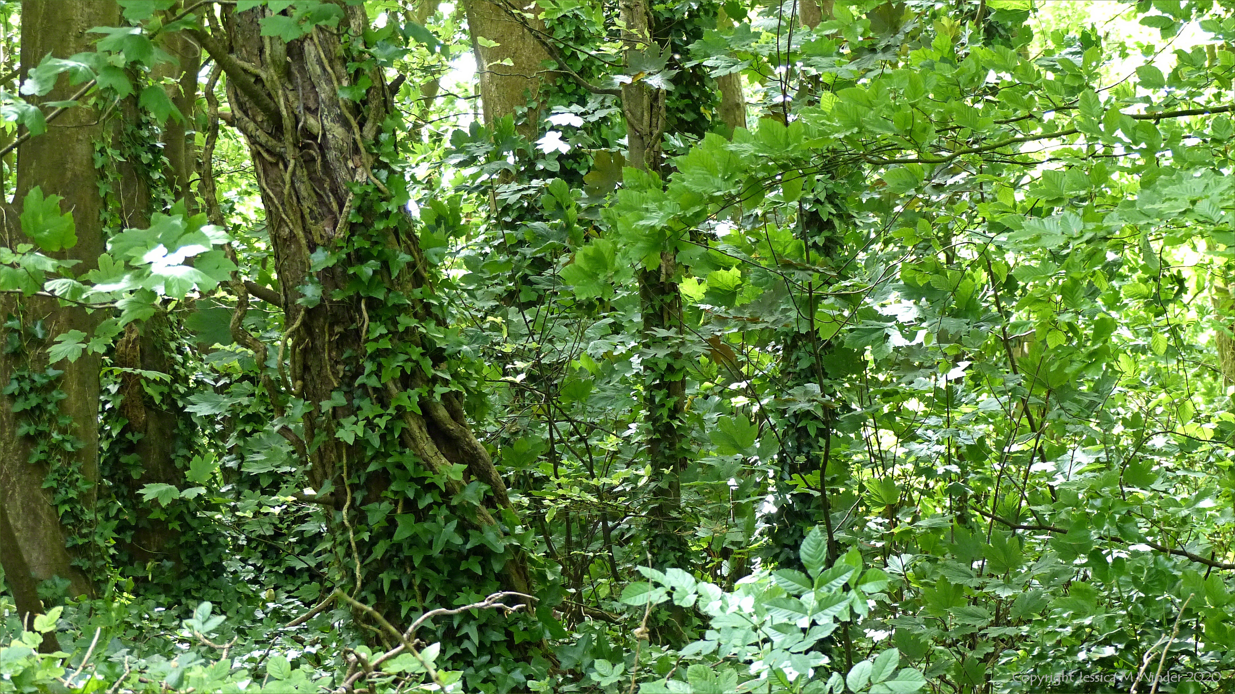 View through the trees at the side of the bridle path to Forston Grange on the east side of Charlton Down in Dorset during the coronavirus lockdown May 2020