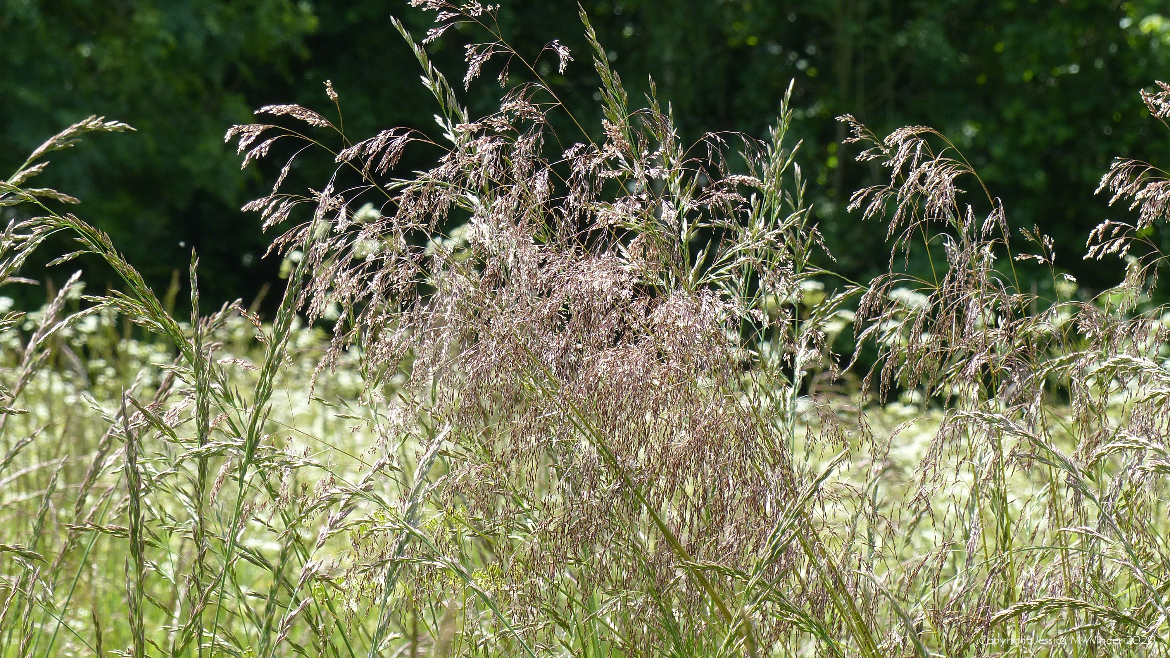 Daily Walk 63.5 Tall flowering grasses glistening in the sun at “The Meadow” in Charlton Down, Dorset, May 2020.