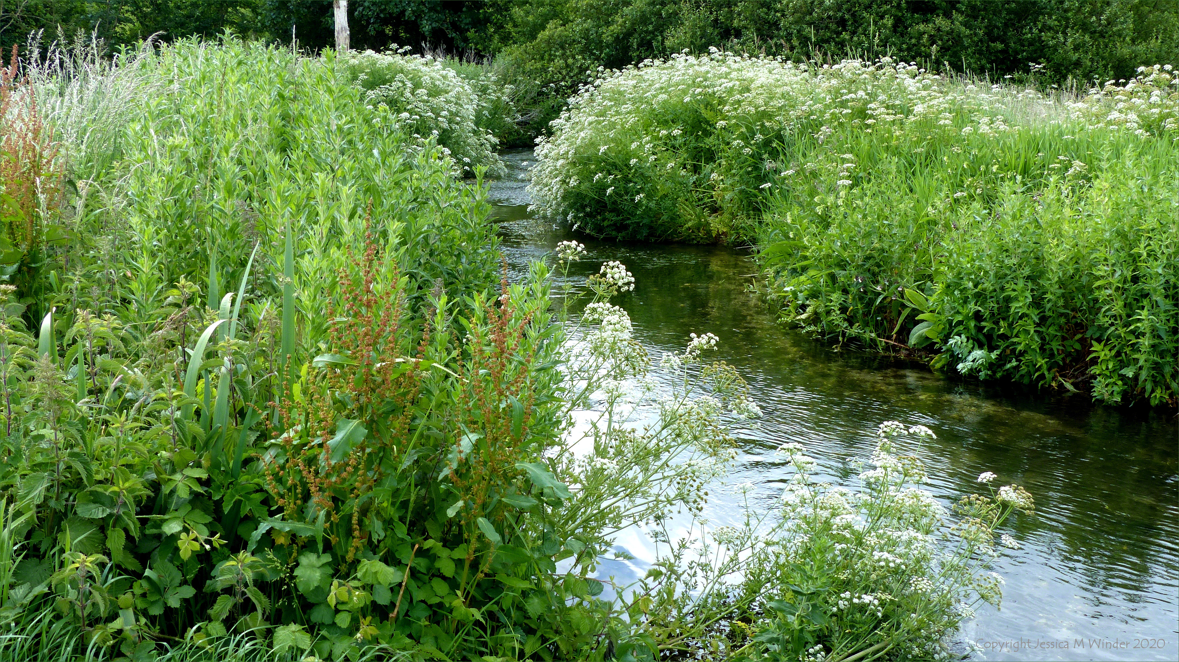 View along the banks of the River Cerne near Charlton Down in Dorset 7th June 2020