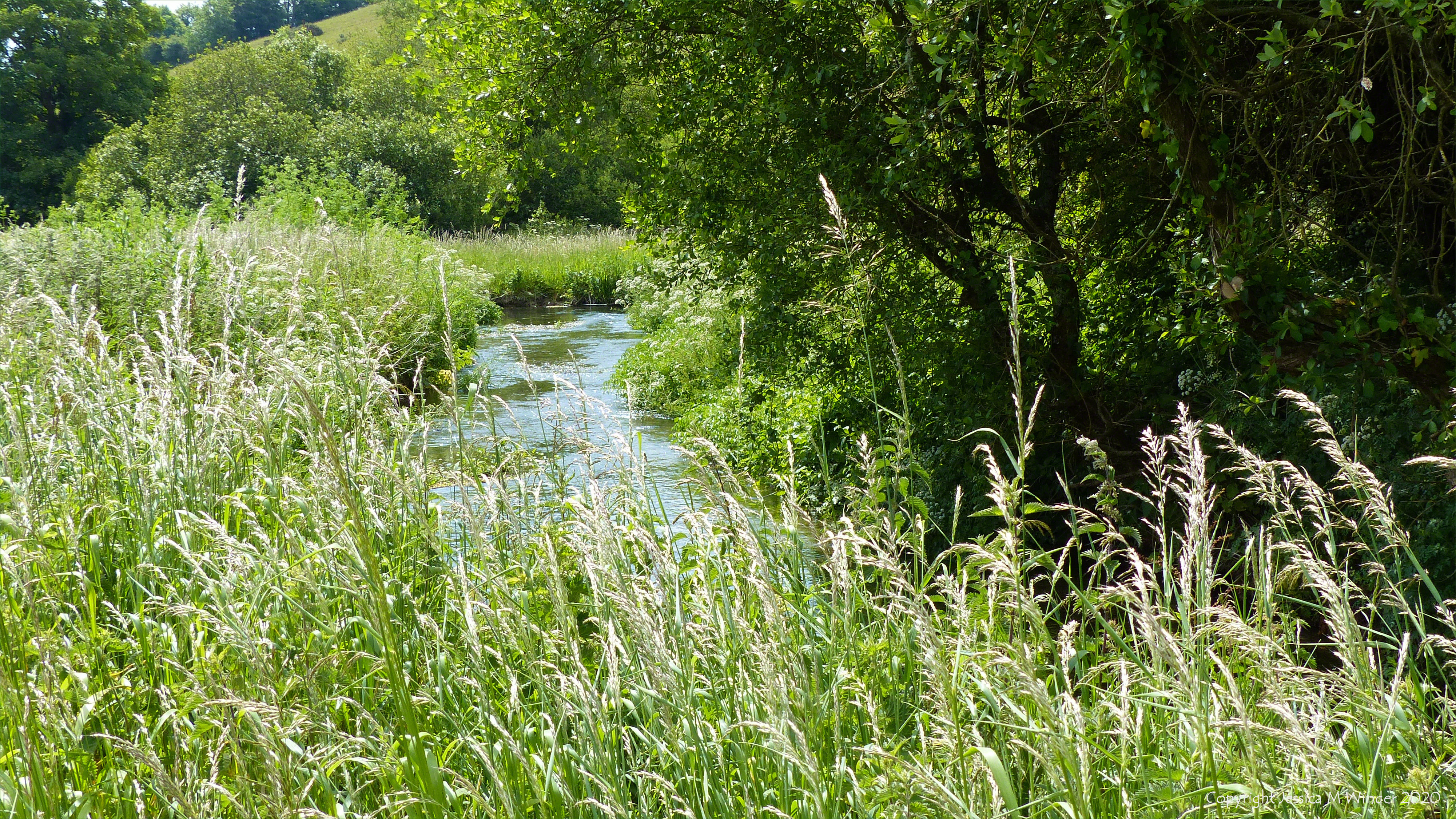 View along the banks of the River Cerne near Charlton Down in Dorset 7th June 2020