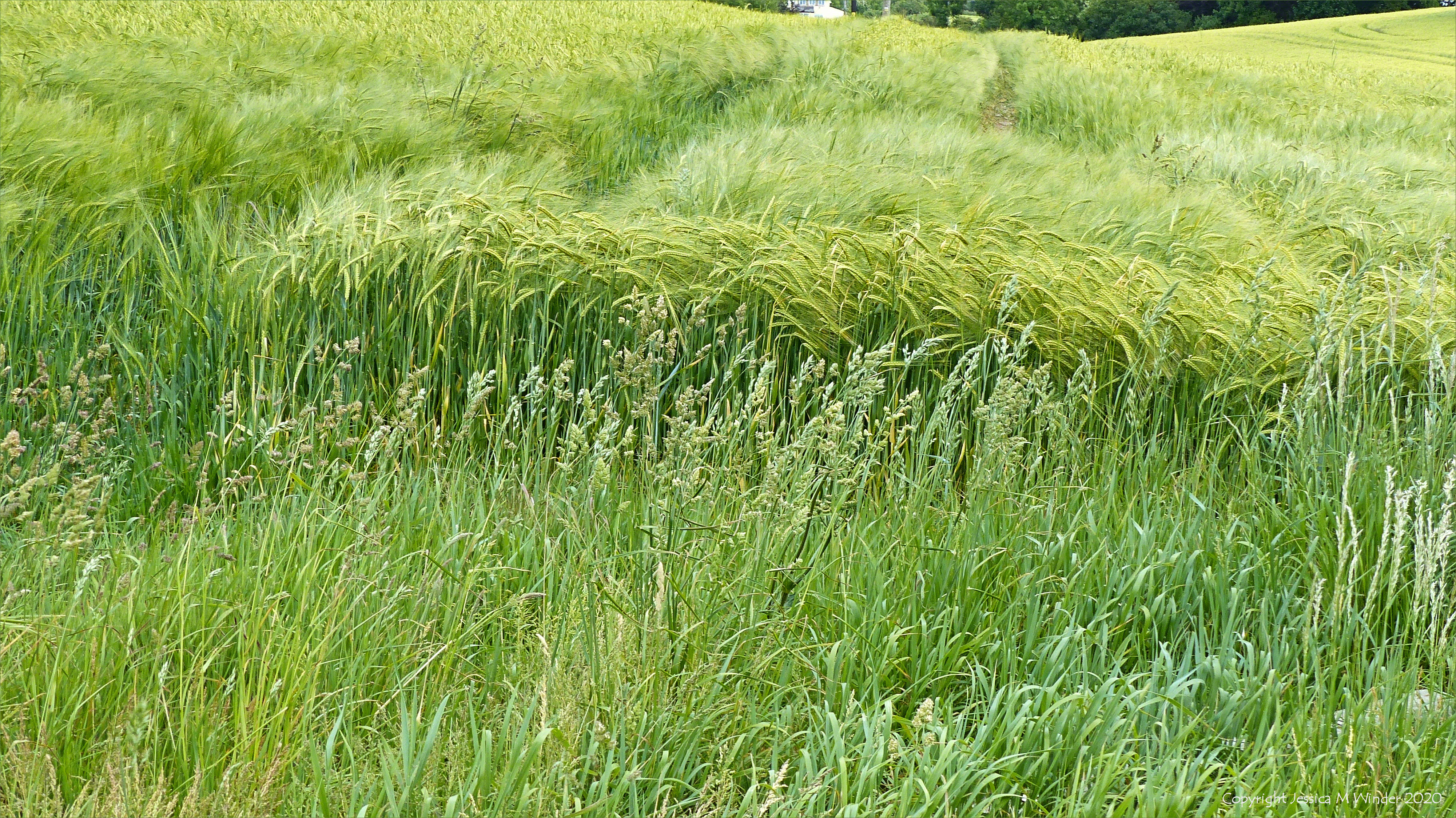 Grasses and barley in a field at Charlton Down in Dorset, 6th June 2020.