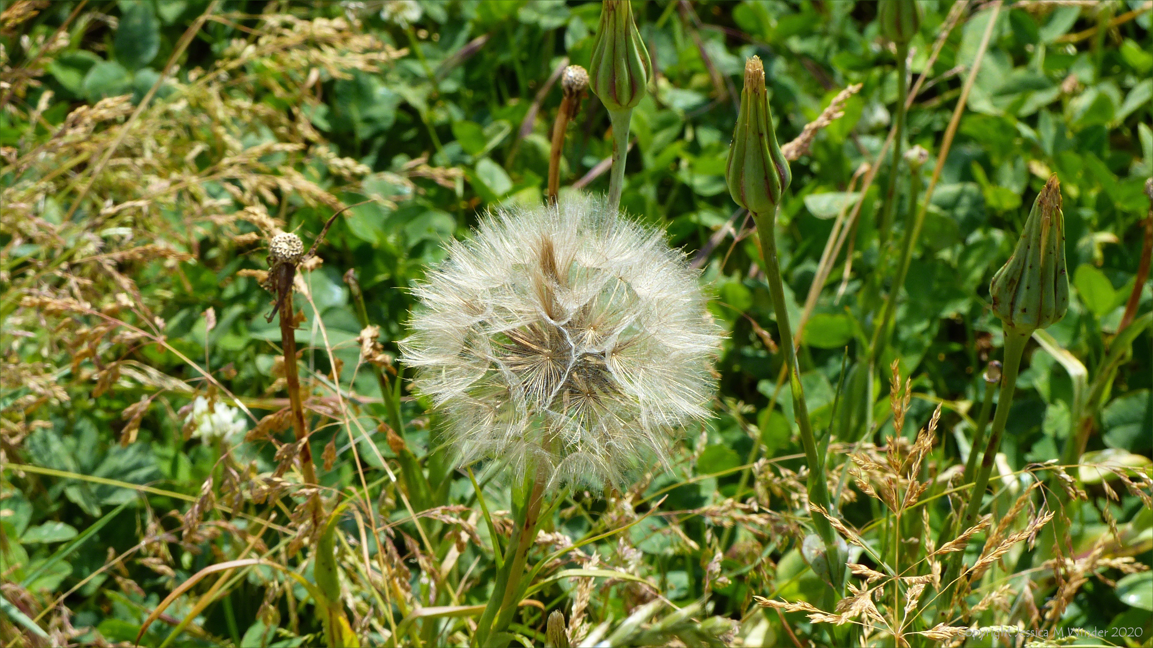 Daily Walk 79.1 Goat’s-beard seed “clock” (Tragopogon pratensis) at Charlton Down in Dorset June 2020.