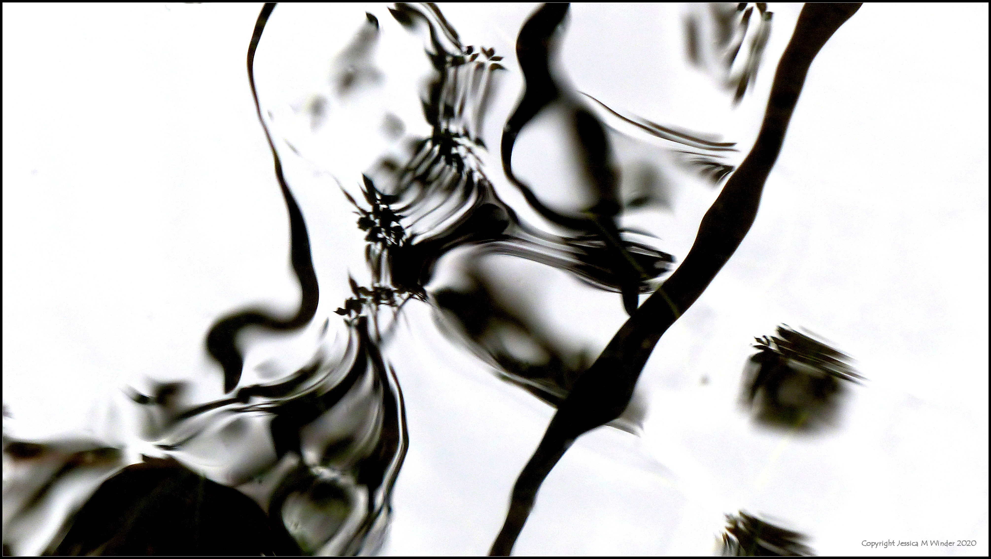 Reflections on water in the River Cerne near Charminster in Dorset looked like the ink and brush work seen in Japanese style paintings and calligraphy. July 13th 2020.