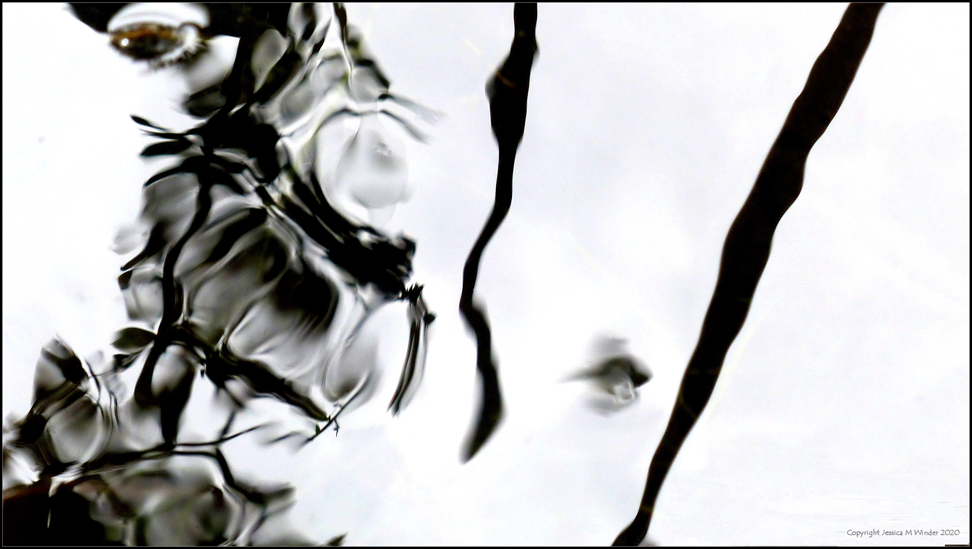 Reflections on water in the River Cerne near Charminster in Dorset looked like the ink and brush work seen in Japanese style paintings and calligraphy. July 13th 2020.