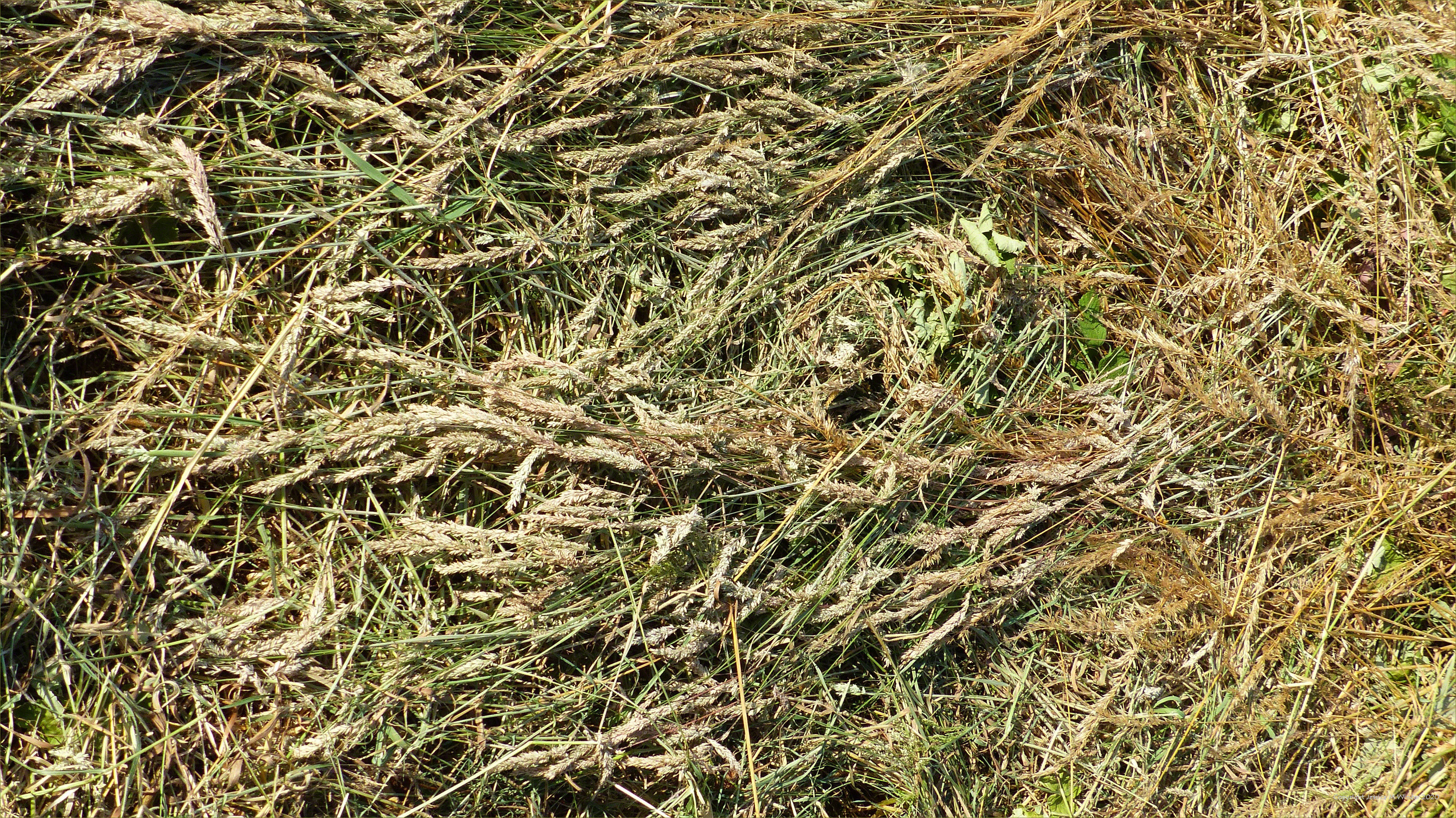 Details of a mown field at Charlton Down in Dorset 16 July 2020