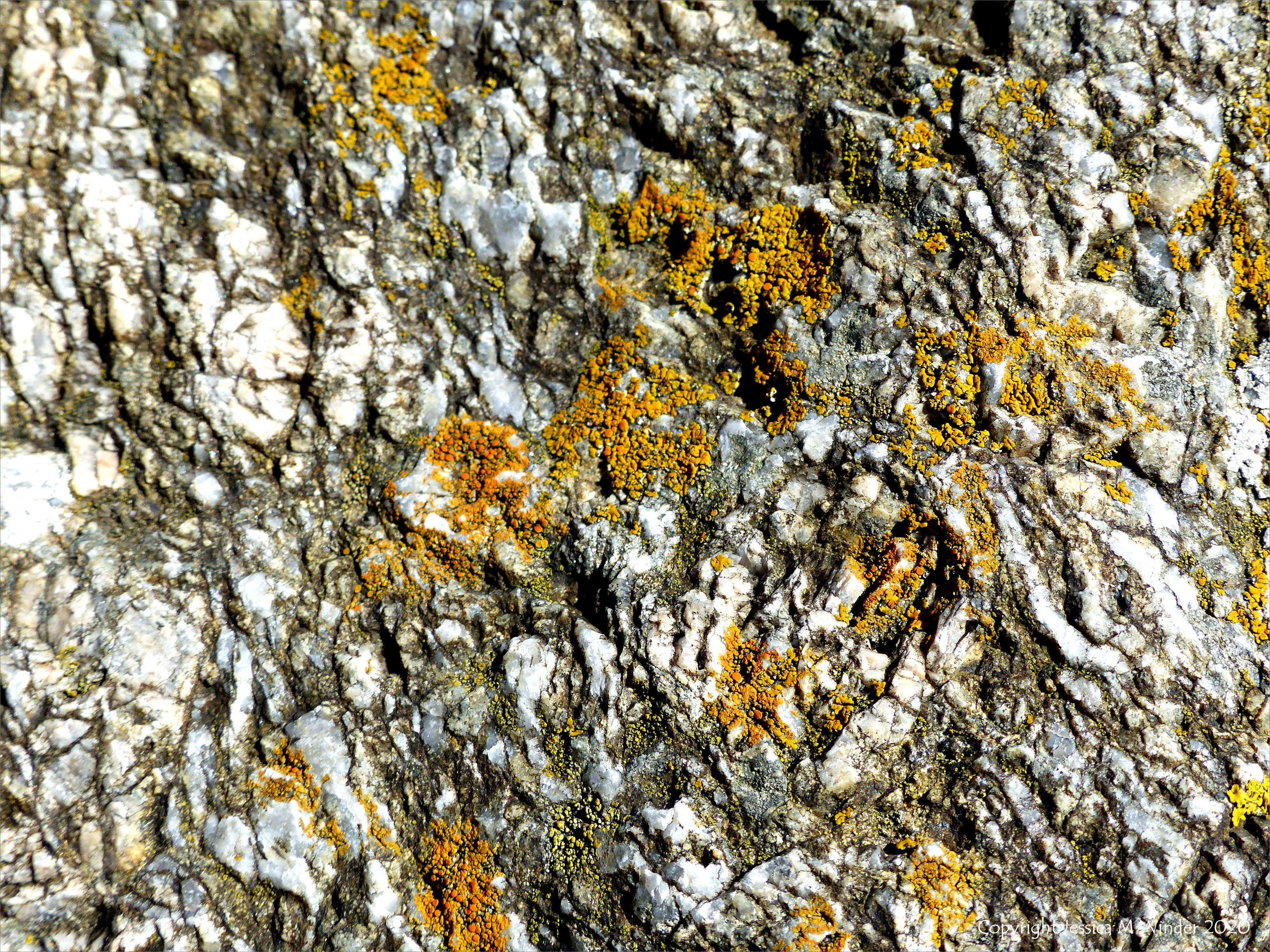 Rock texture and pattern on the shore at Moulin Huet Bay in the Channel Islands.