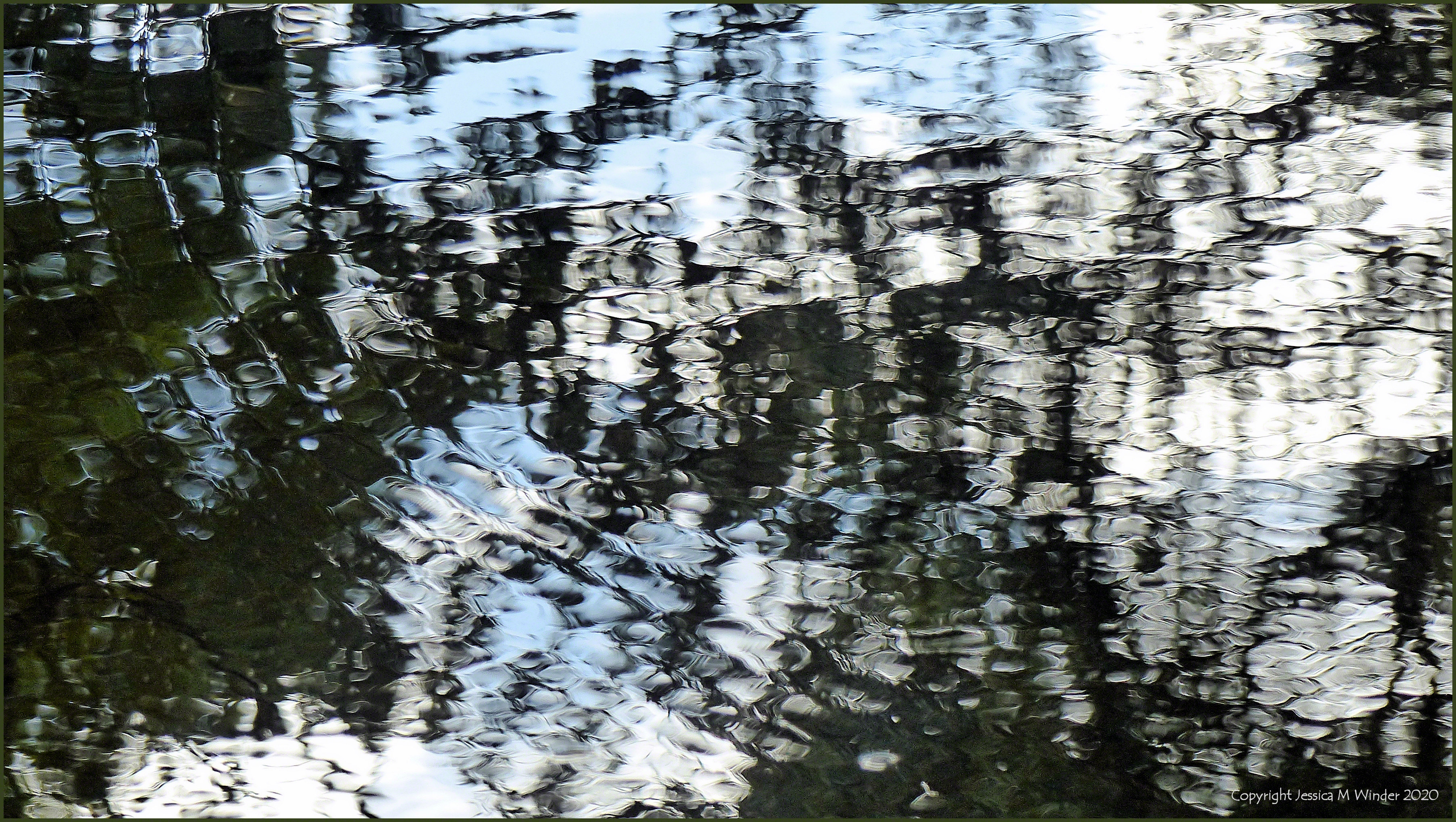 Abstract Reflections MBC 8 Trees reflected in still water of the Monmouth and Brecon Canal near Pontypool August 2020.