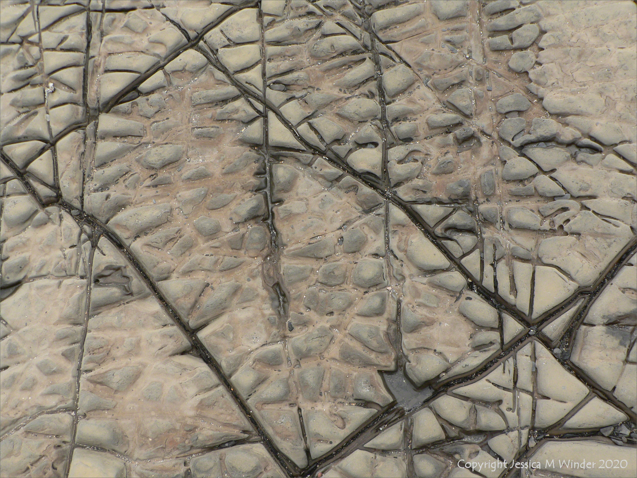 Natural abstract patterns in horizontal sedimentary rock strata on the seashore.