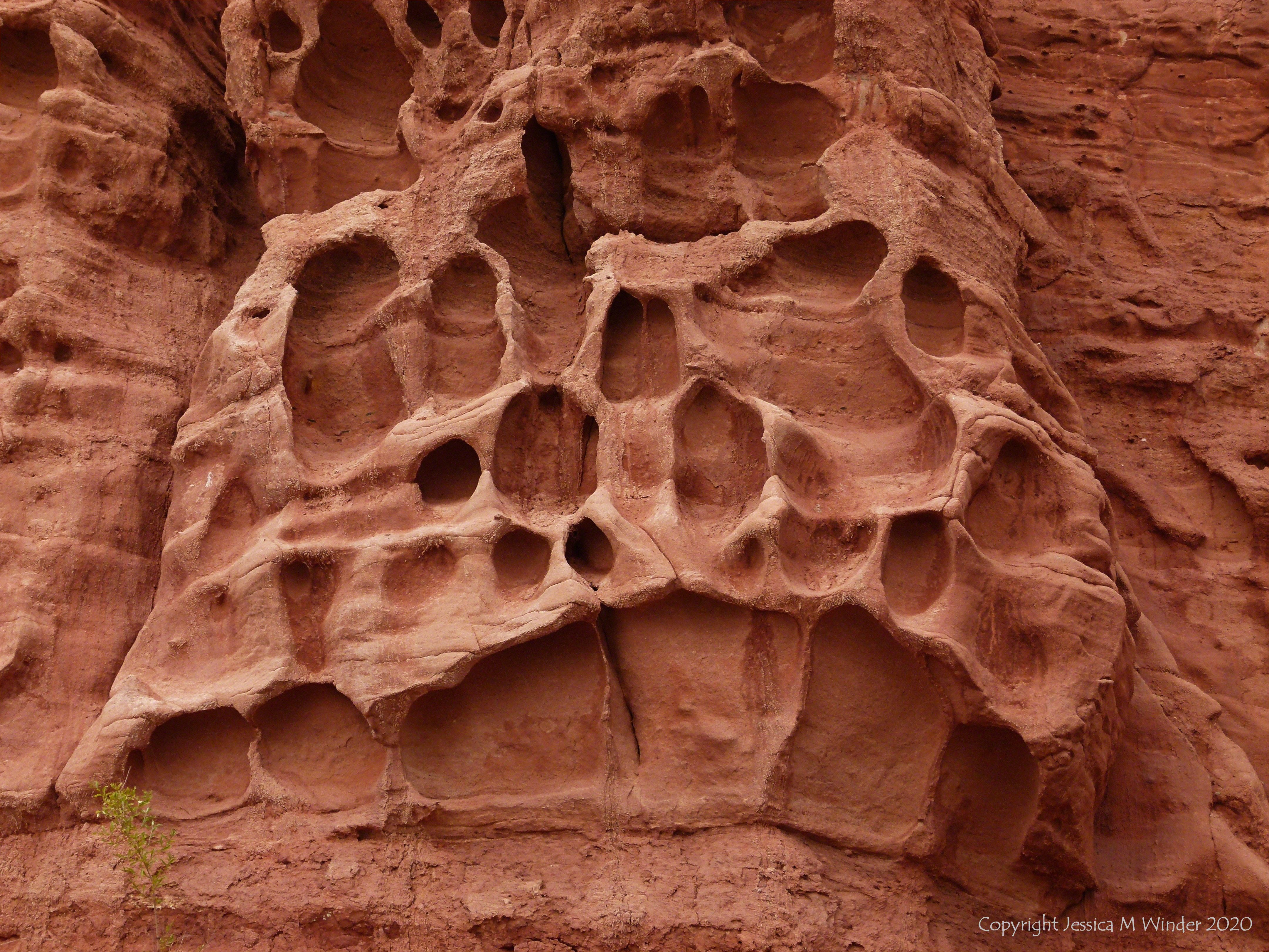 Honeycomb weathering pattern and texture in red rocks