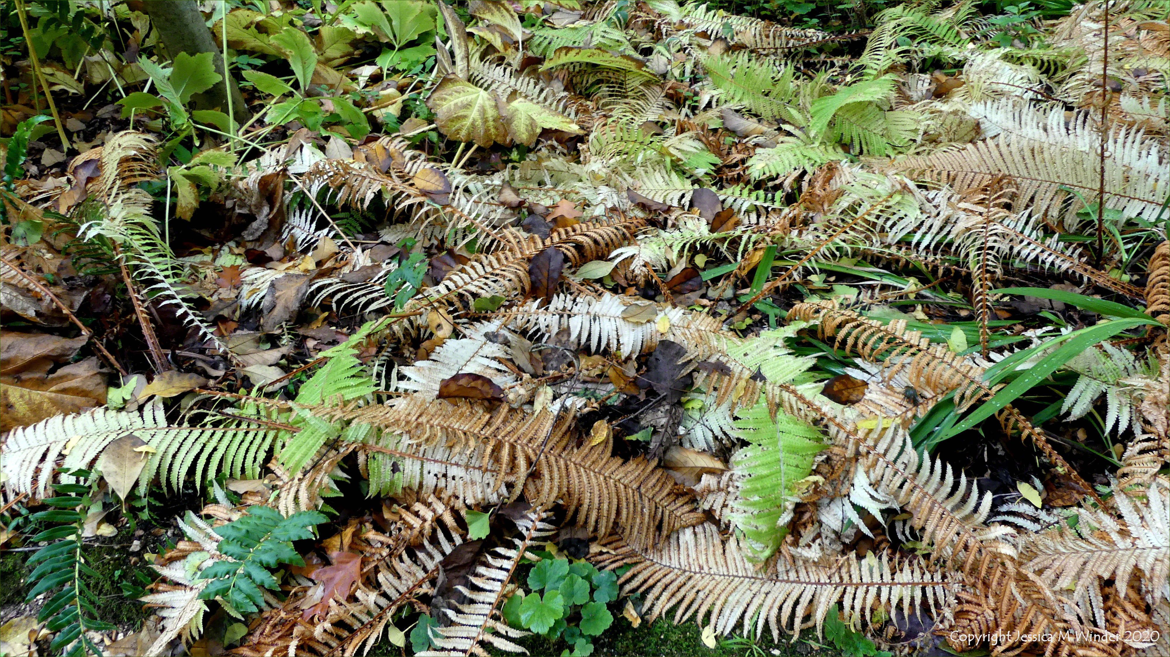 Fern leaves at Abbotsbury Subtropical Gardens in Dorset, England, October 2020.