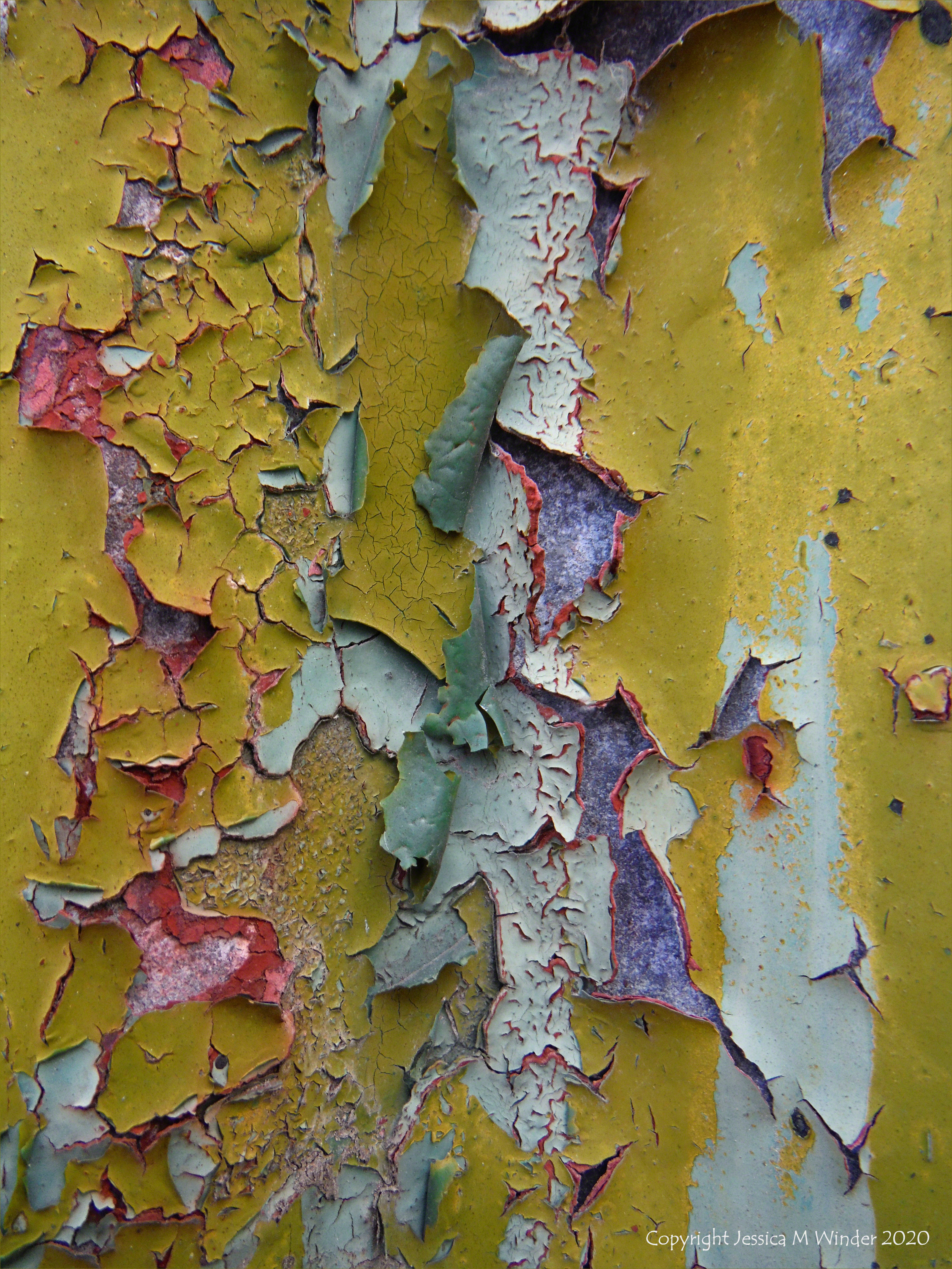 Colour, pattern and texture in peeling paintwork