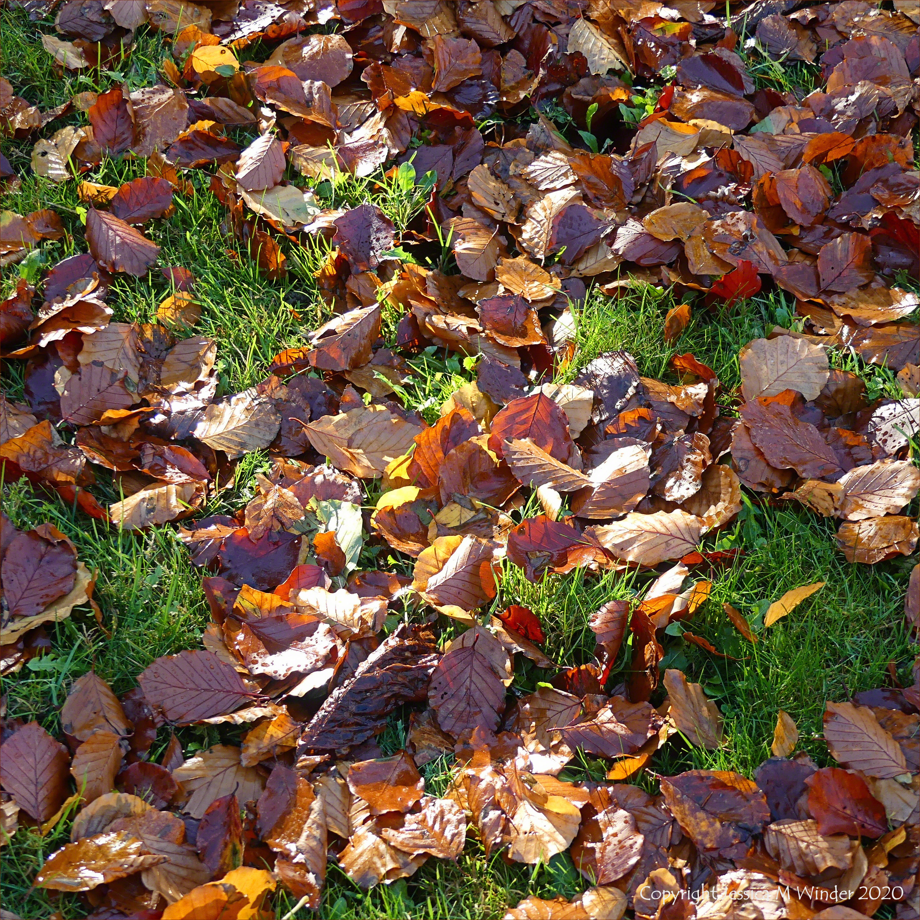 Autumn leaves lying on the ground starting their decomposition journey of natural nutrient recycling. All photos of leaves in Entropy Series 8 taken during a few yards walk a short distance from my door in the village of Charlton Down in Dorset, England, 26 October 2020.