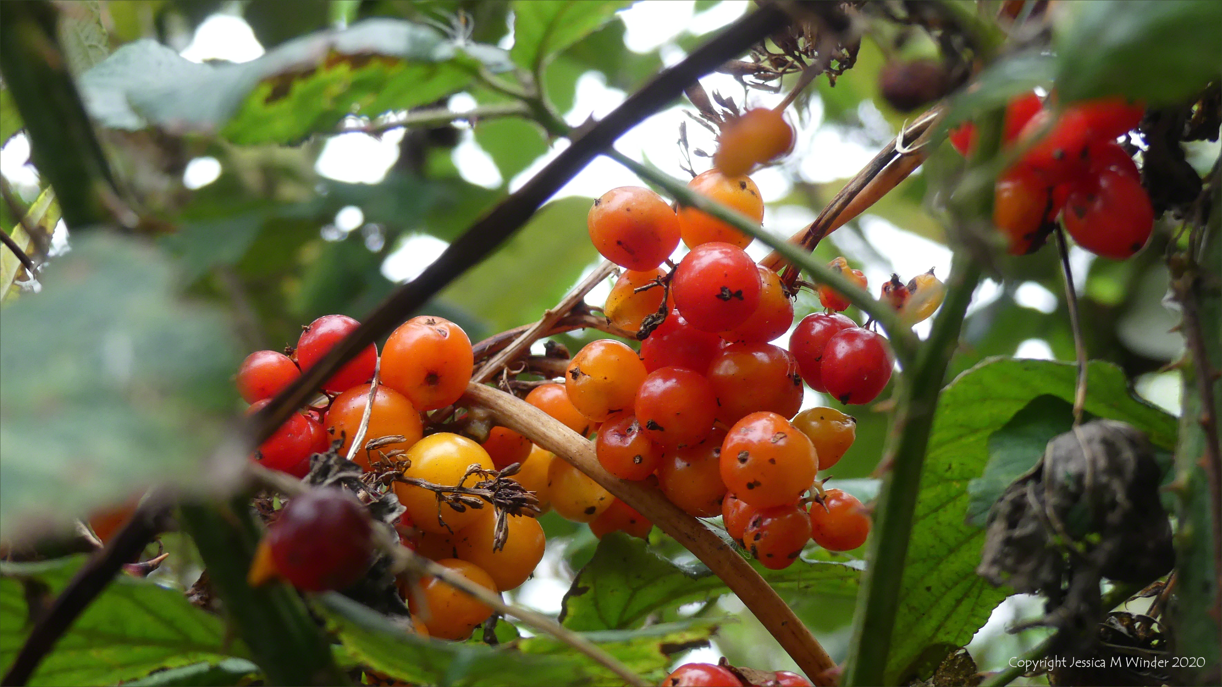 Red berries of White Bryony along the path around the reserve at Radipole Lake in Weymouth, Dorset, October 2020