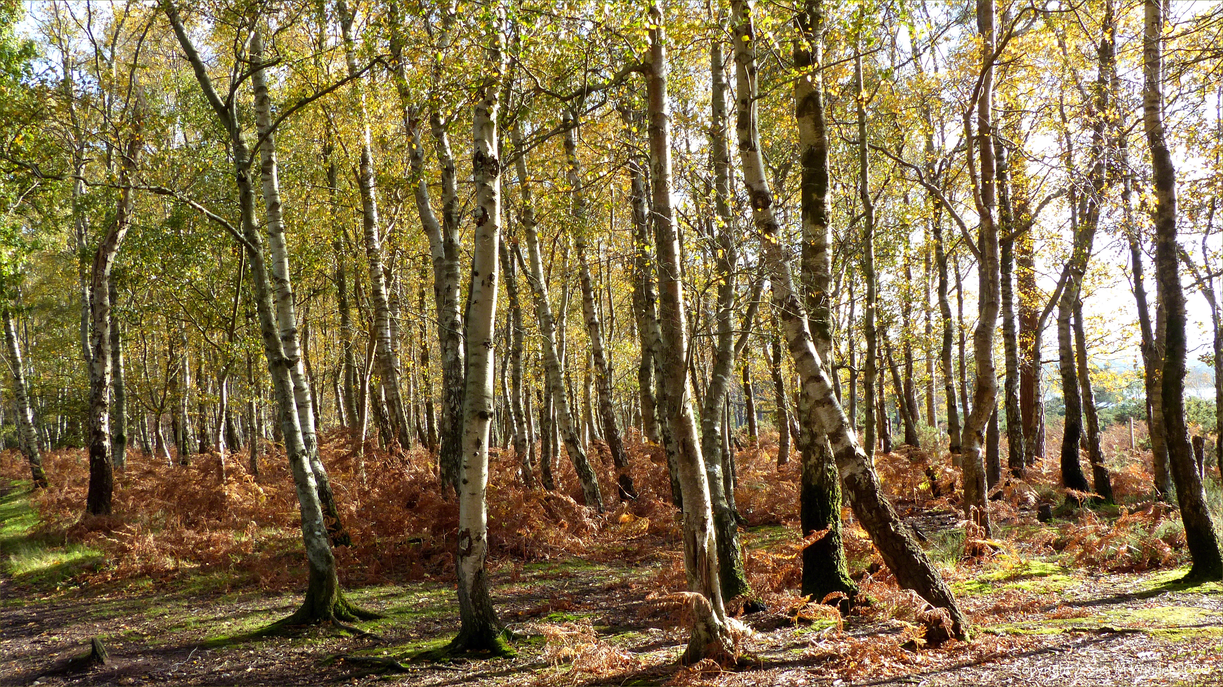 Birch trees in woodland at Arne RSPB reserve in Dorset, 3 November 2020.