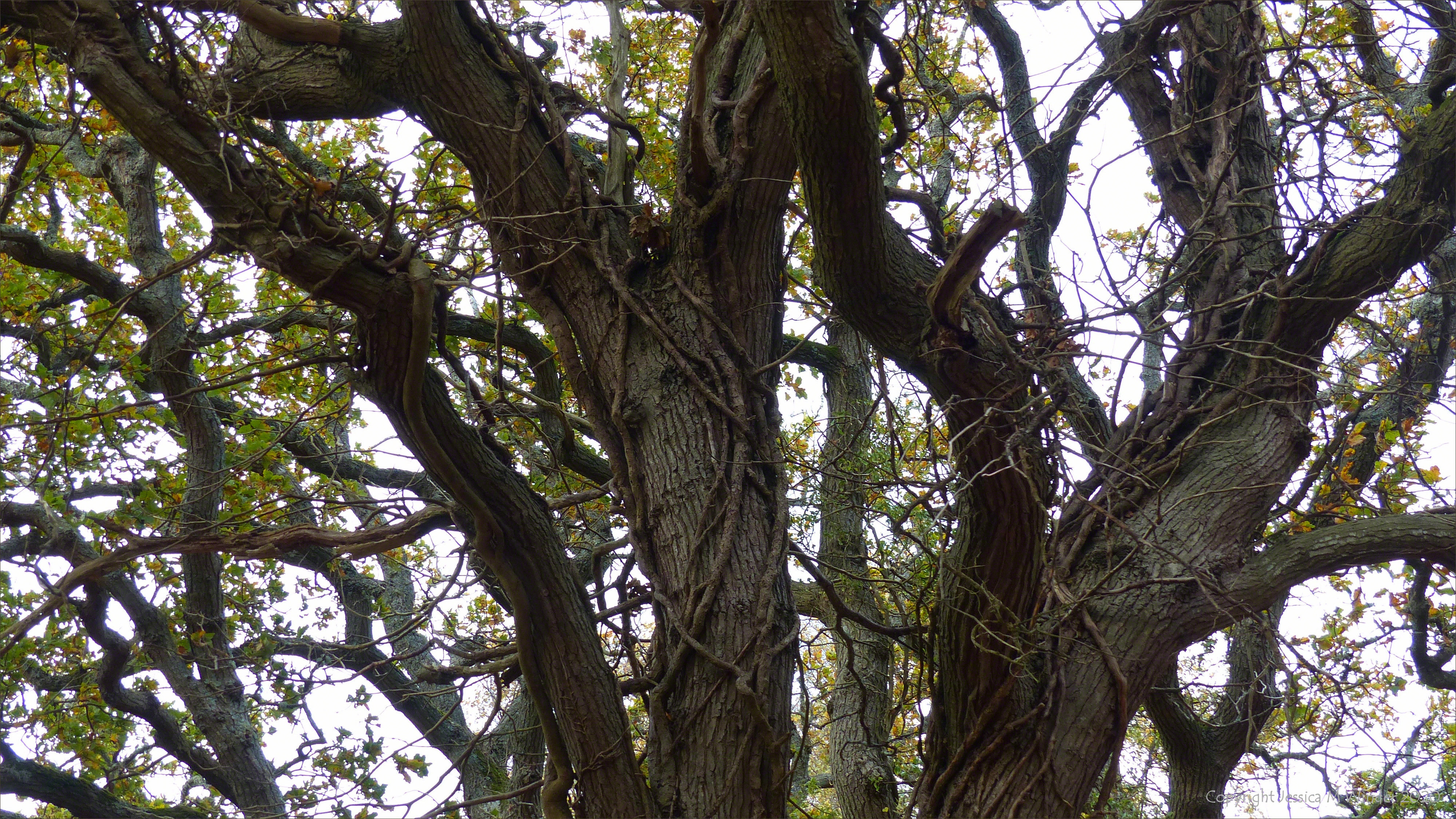 Arne Autumn 1.11 Detail of ancient oak tree in woodland at Arne RSPB reserve in Dorset, 3 November 2020.