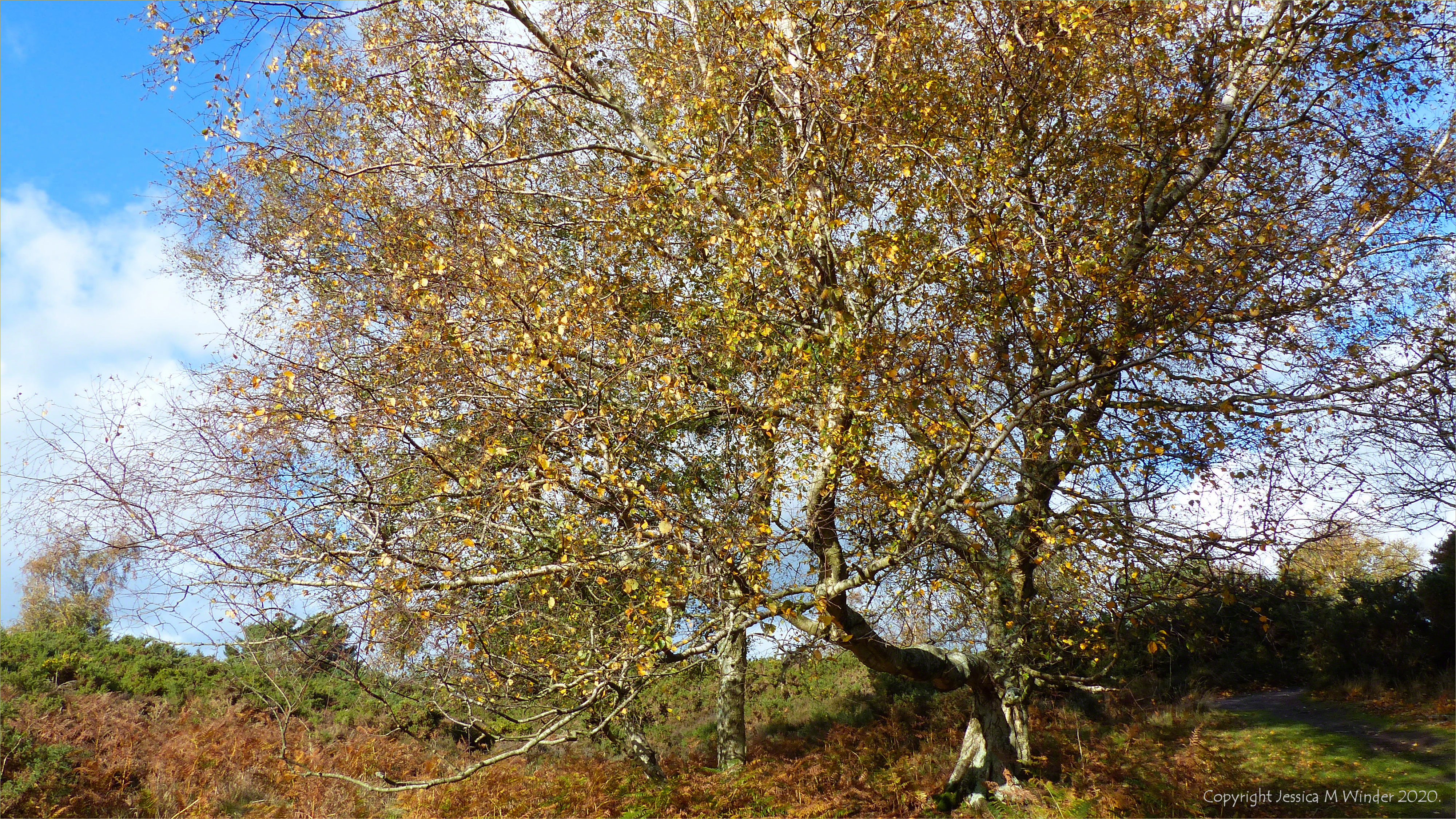 Birch tree at Arne RSPB reserve in Dorset, 3 November 2020.