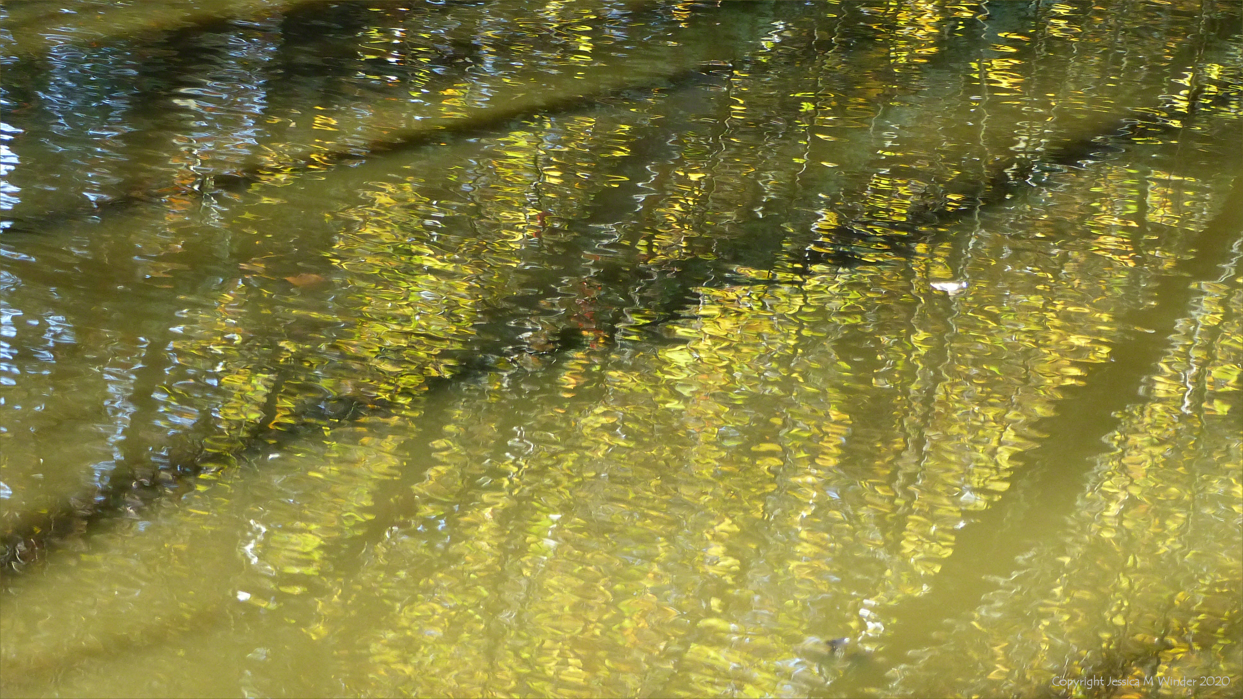 Reflection patterns in Rushy Pond, at the boundary of heath and woodland habitats, from a walk in Thorncombe Woods, Dorset, 10 November 2020.