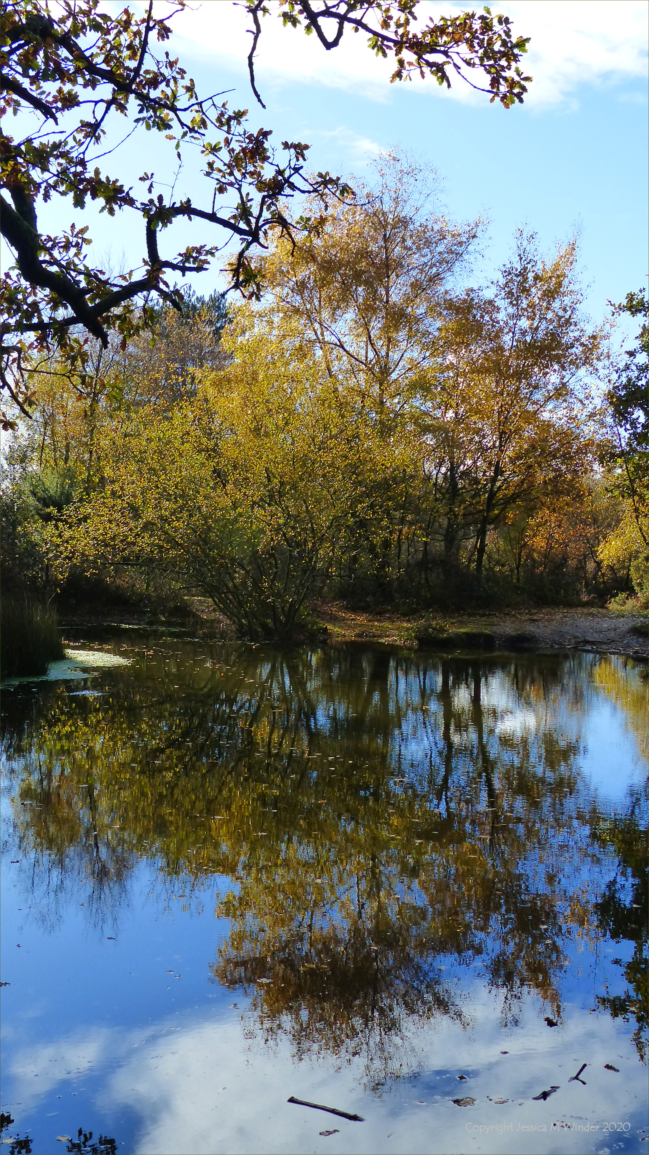 Rushy Pond, at the boundary of heath and woodland habitats, on a walk in Thorncombe Woods, Dorset, 10 November 2020.