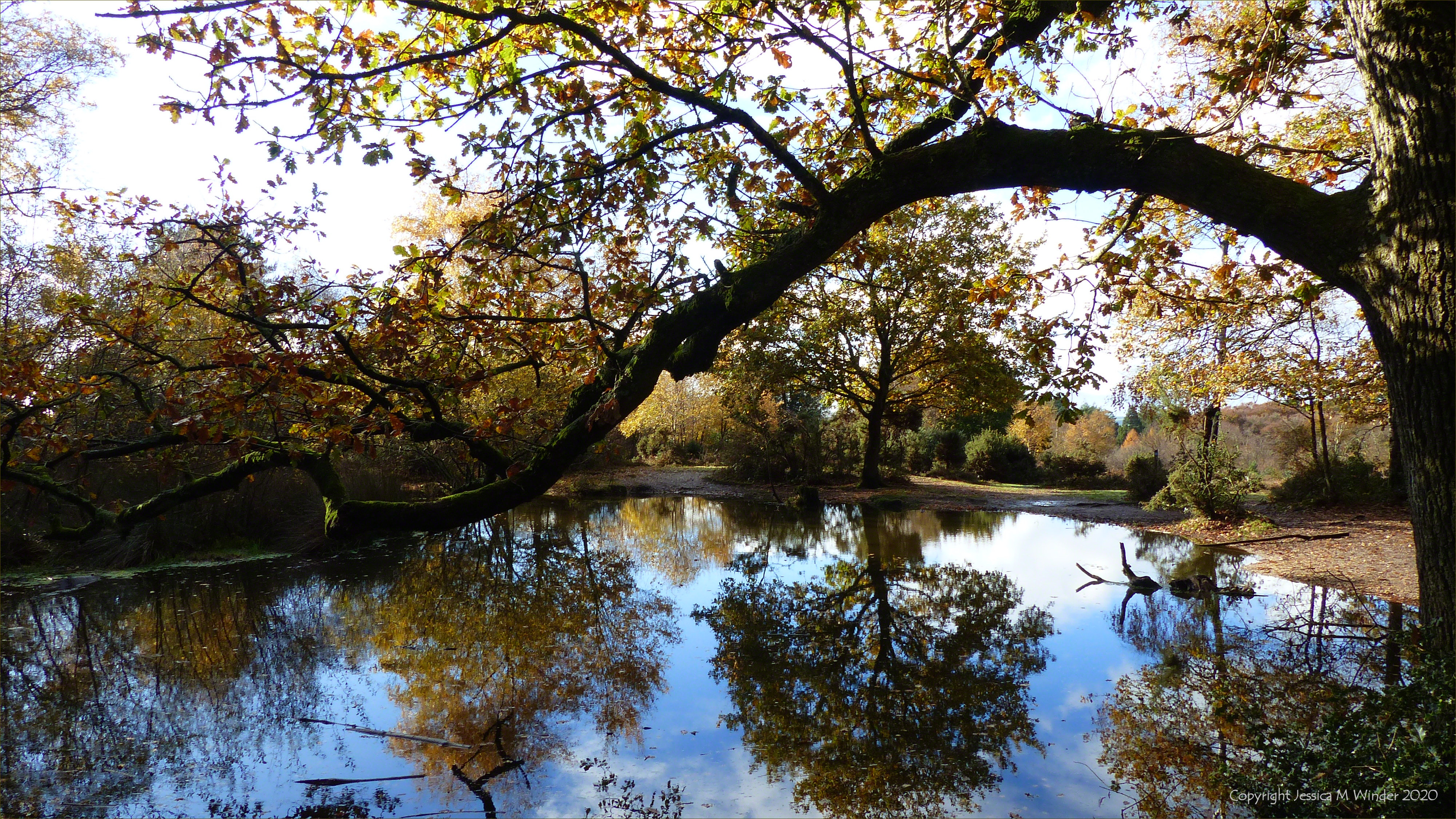 Rushy Pond, at the boundary of heath and woodland habitats, on a walk in Thorncombe Woods, Dorset, 10 November 2020.