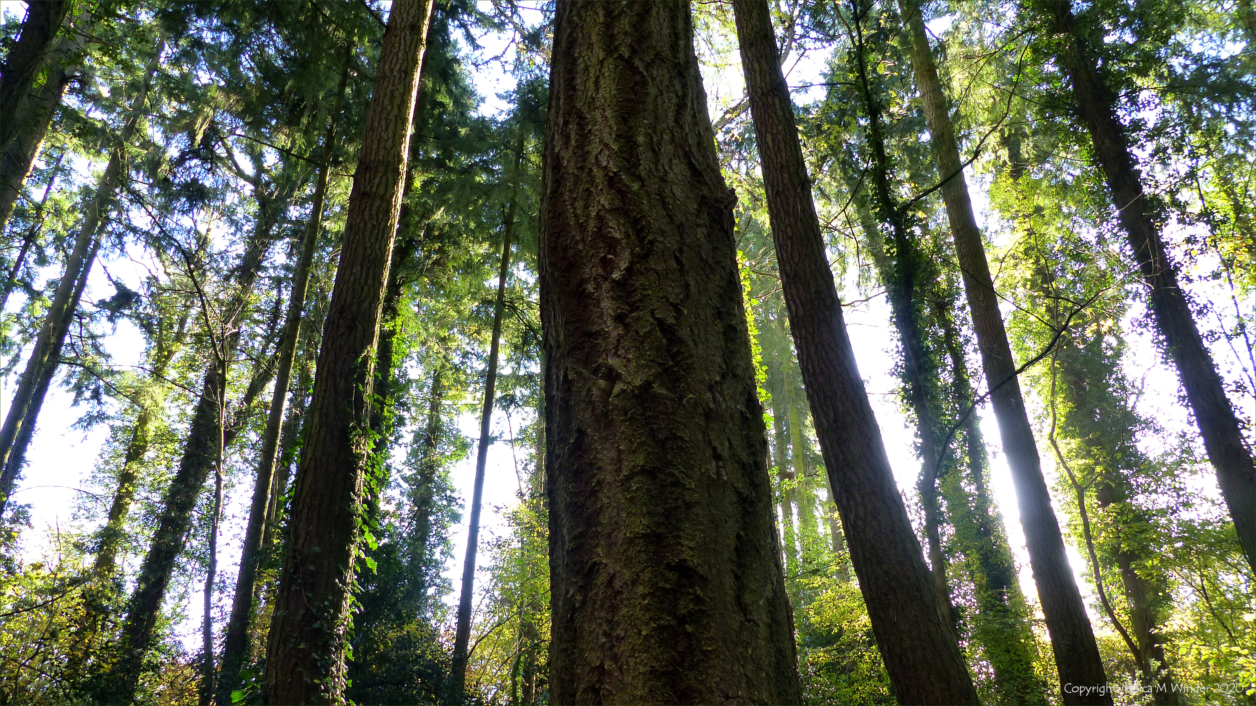 Thorncombe Autumn 1.58 Picture with pines from an autumn walk in Dorset woodland, Thorncombe, 10 November 2020