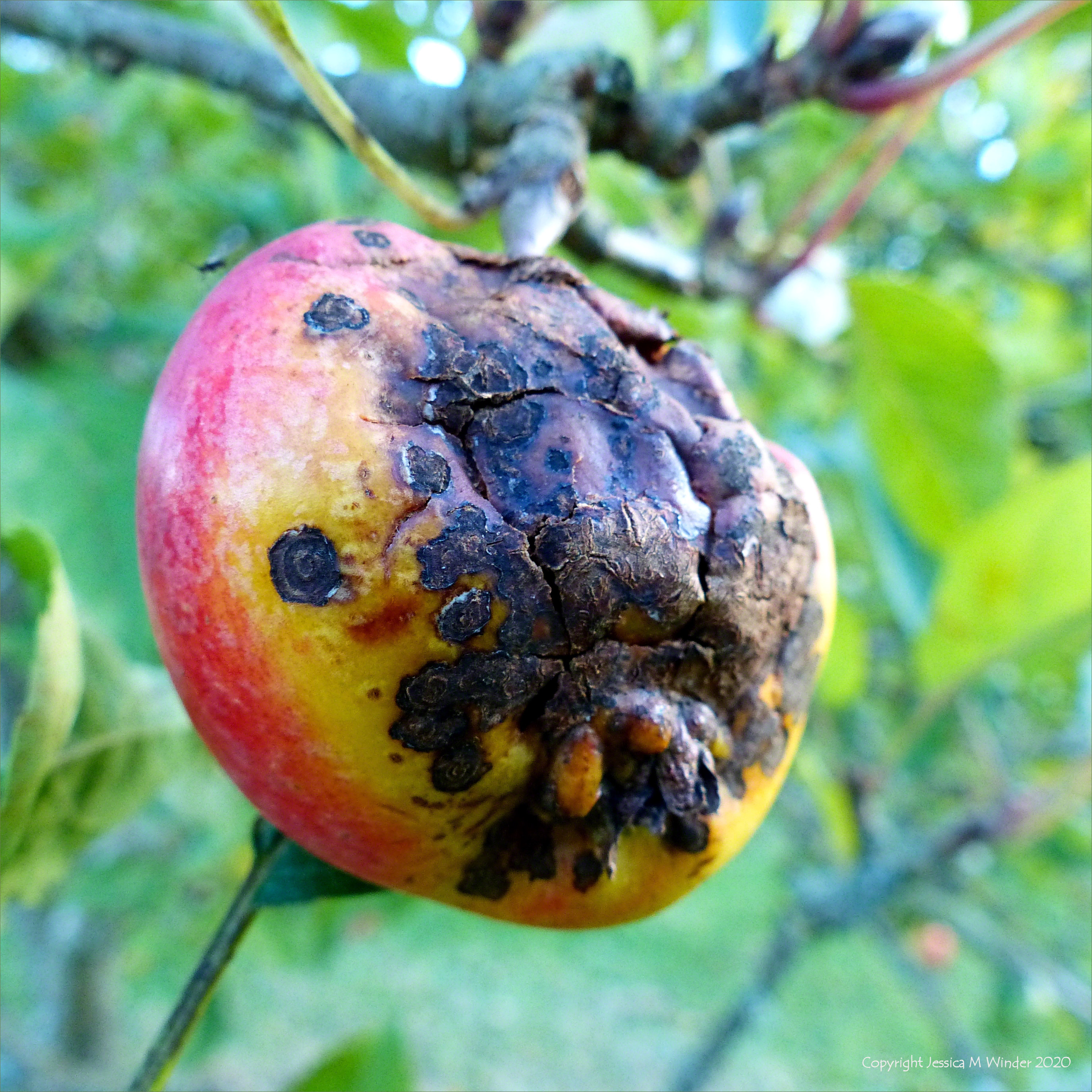 Apples left to decay and decompose on the trees in the community orchard in a Dorset village, 16 October 2020. An example of entropy in action.