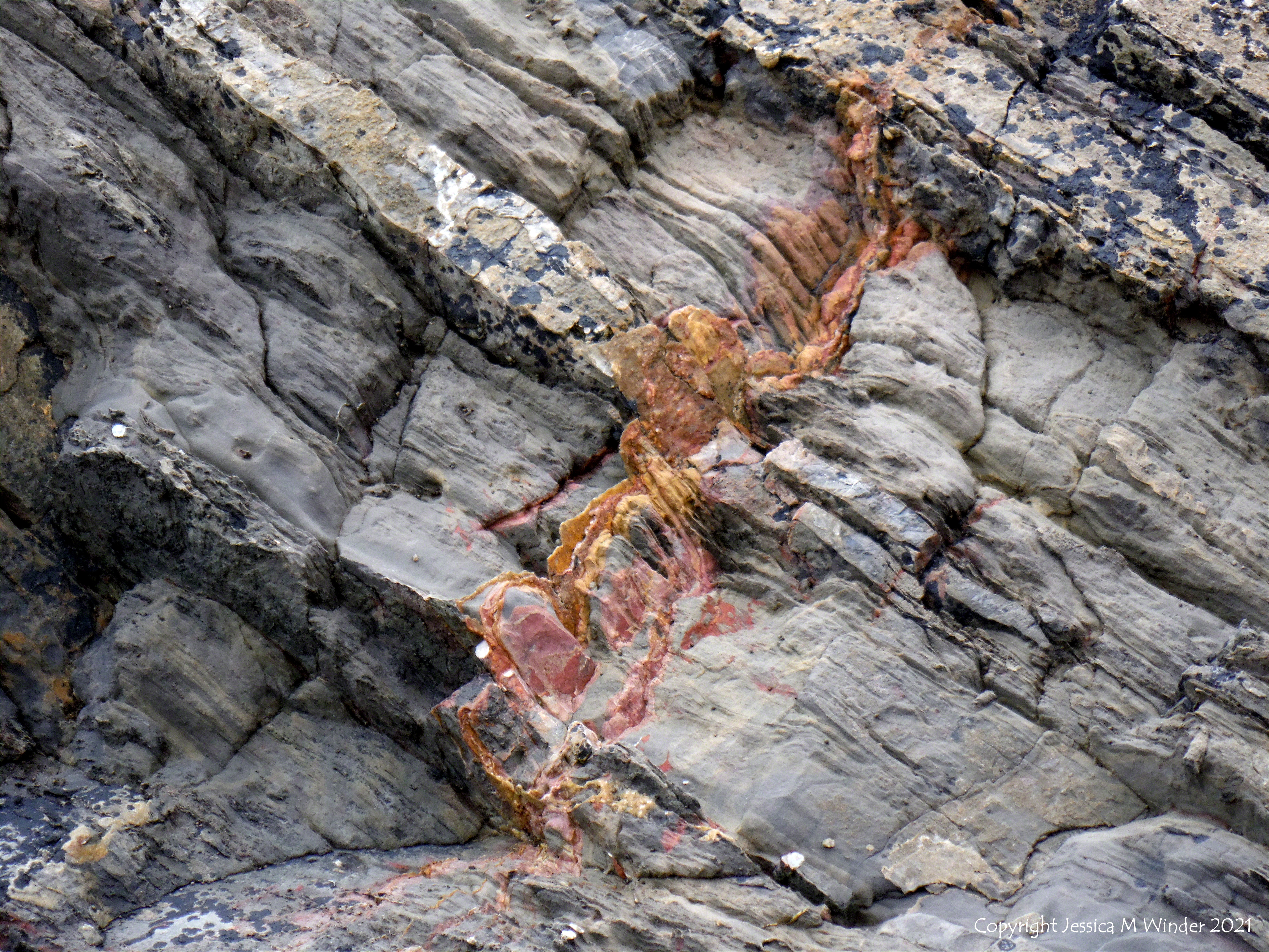 Colour, texture, and pattern on Carboniferous limestone outcrop at Rhossili Bay on Gower in South Wales October 2013