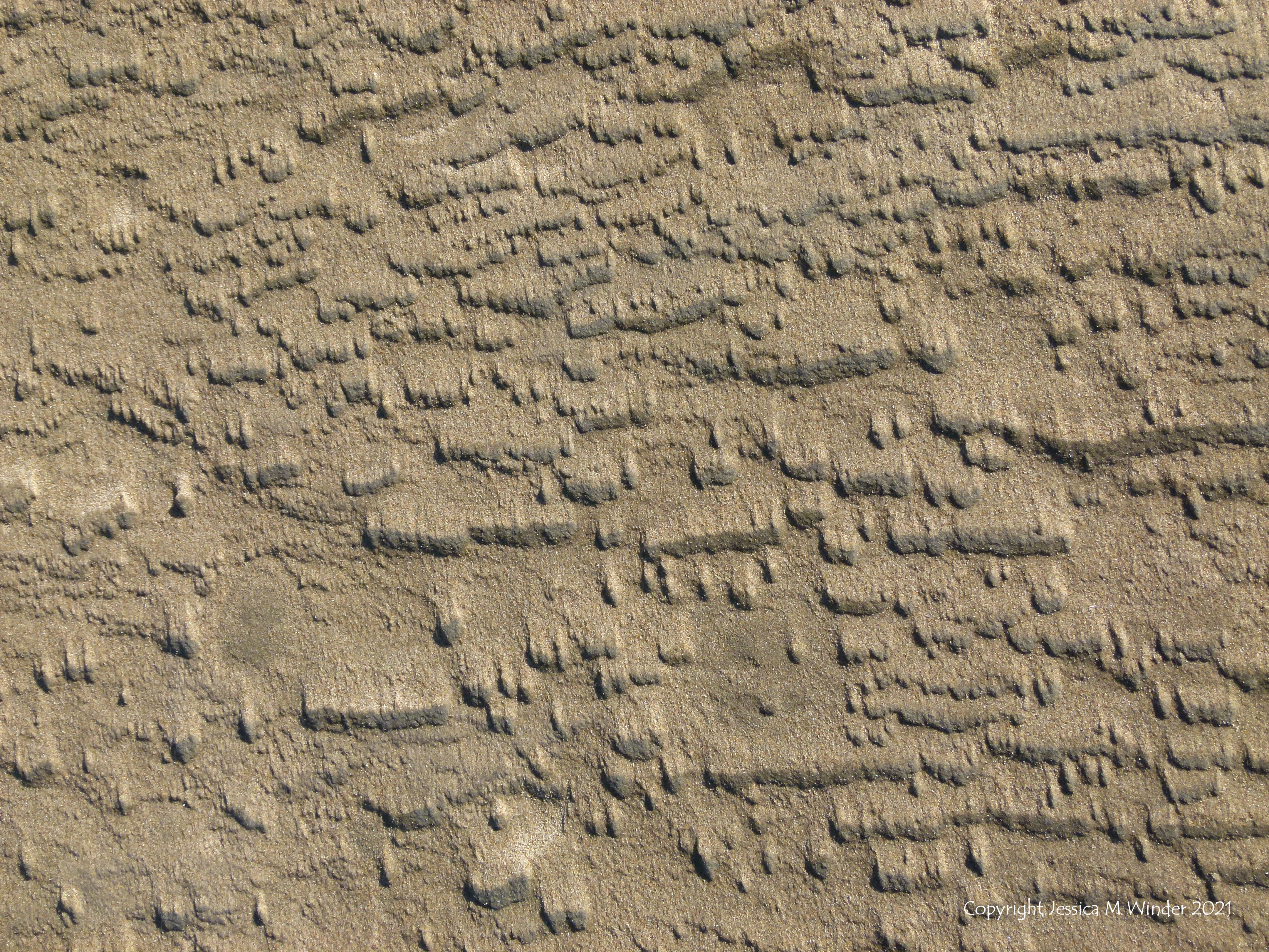 Texture and pattern in the compacted surface of beach sand that has been eroded by wind at Rhossili Bay, Gower, South Wales, October 2013