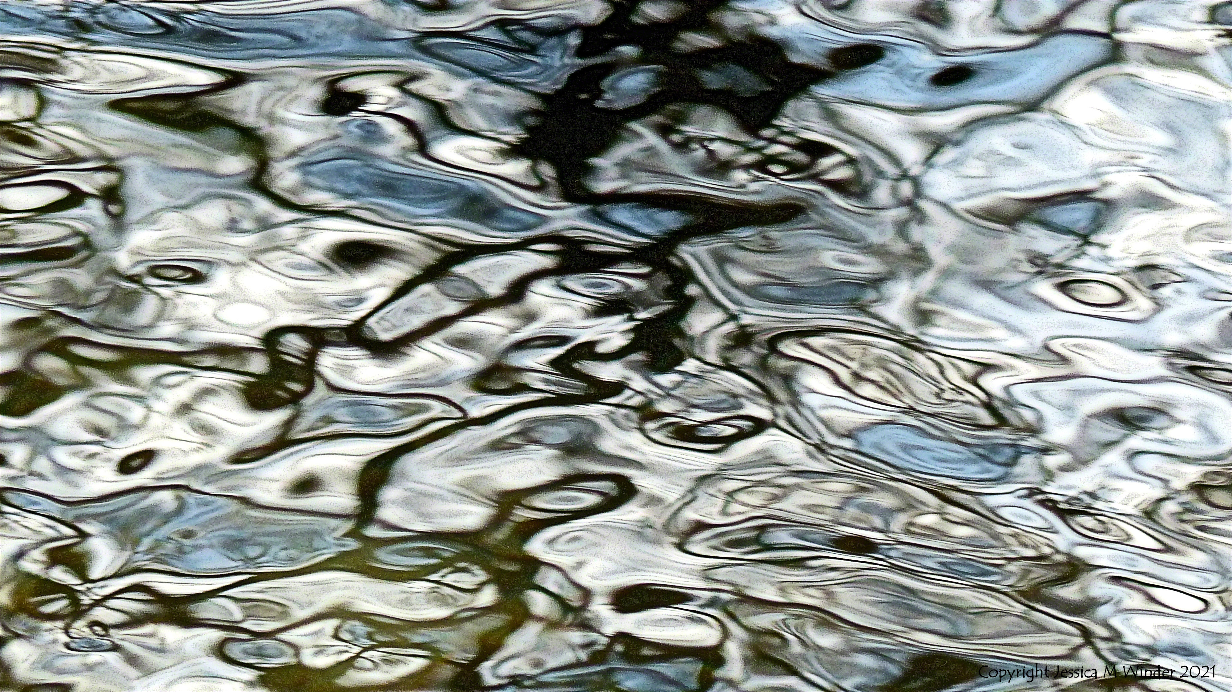 Macro shots of natural patterns of reflected light on fast-flowing water
