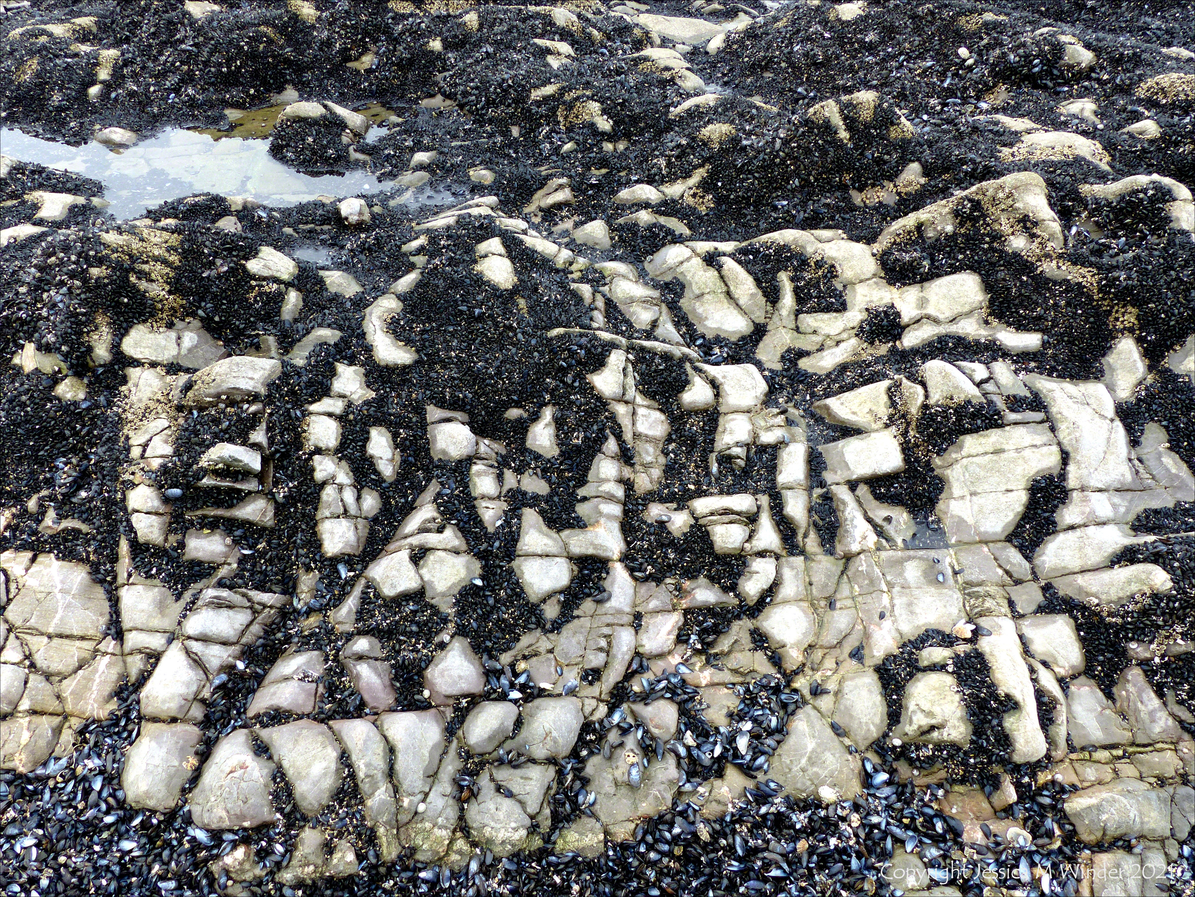 Patterns of mussels growing on rocks