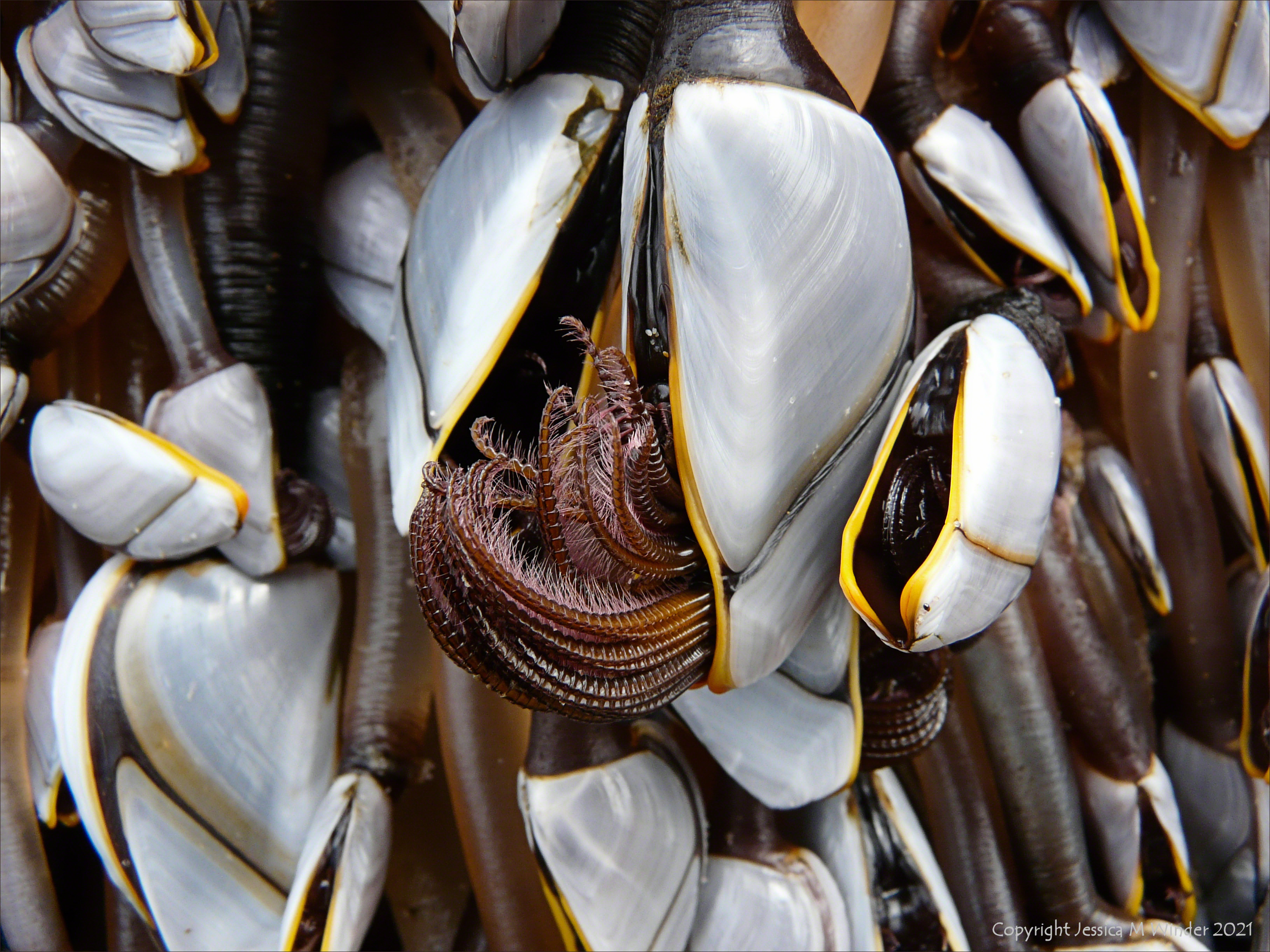 Flotsam 20 RBGPSW August 2008 Close-up of goose barnacles on flotsam washed ashore at Rhossili Bay, Gower, South Wales, August 2008.