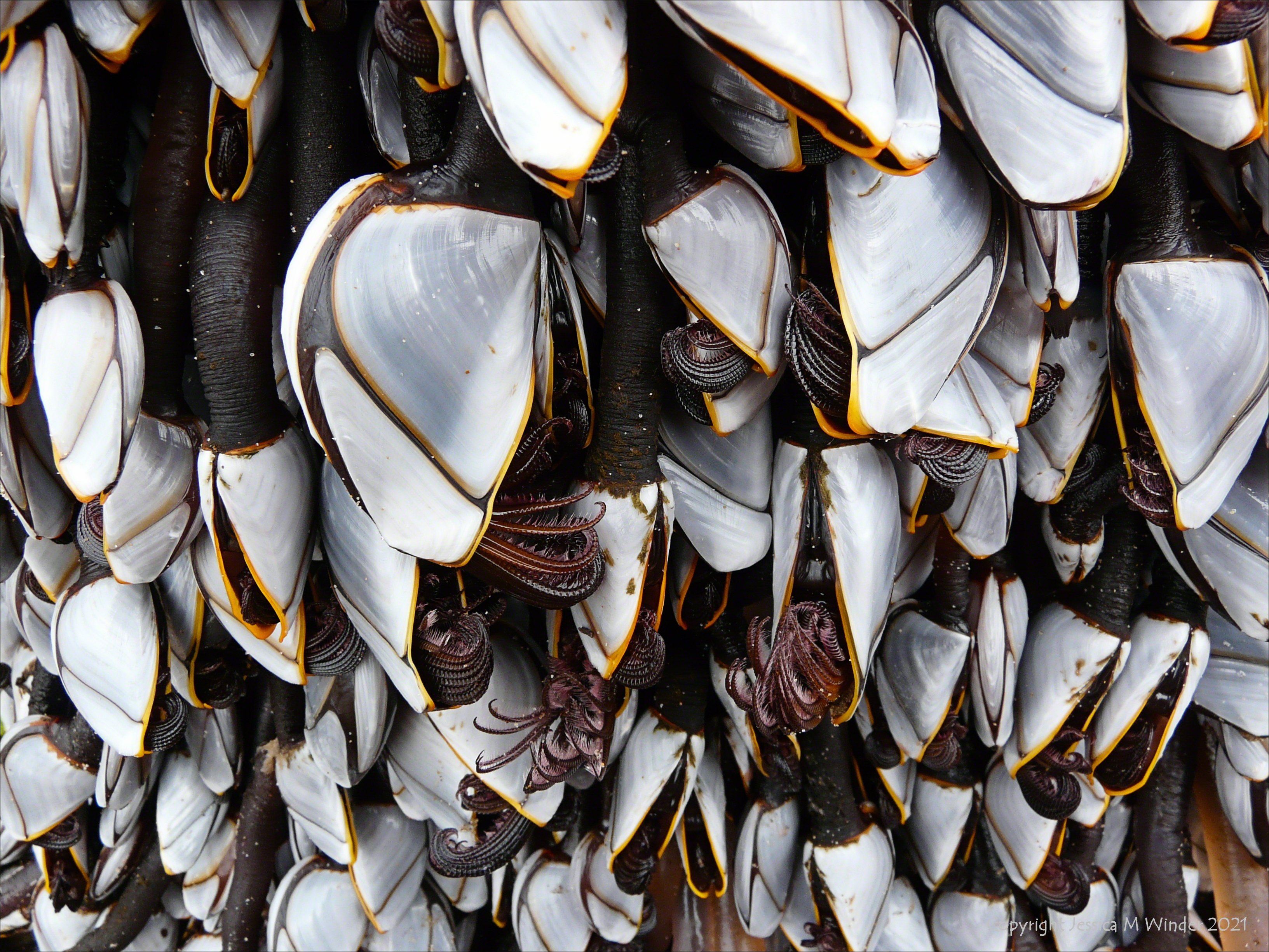Flotsam 25 RBGPSW August 2008 Close-up of goose barnacles on flotsam washed ashore at Rhossili Bay, Gower, South Wales, August 2008.