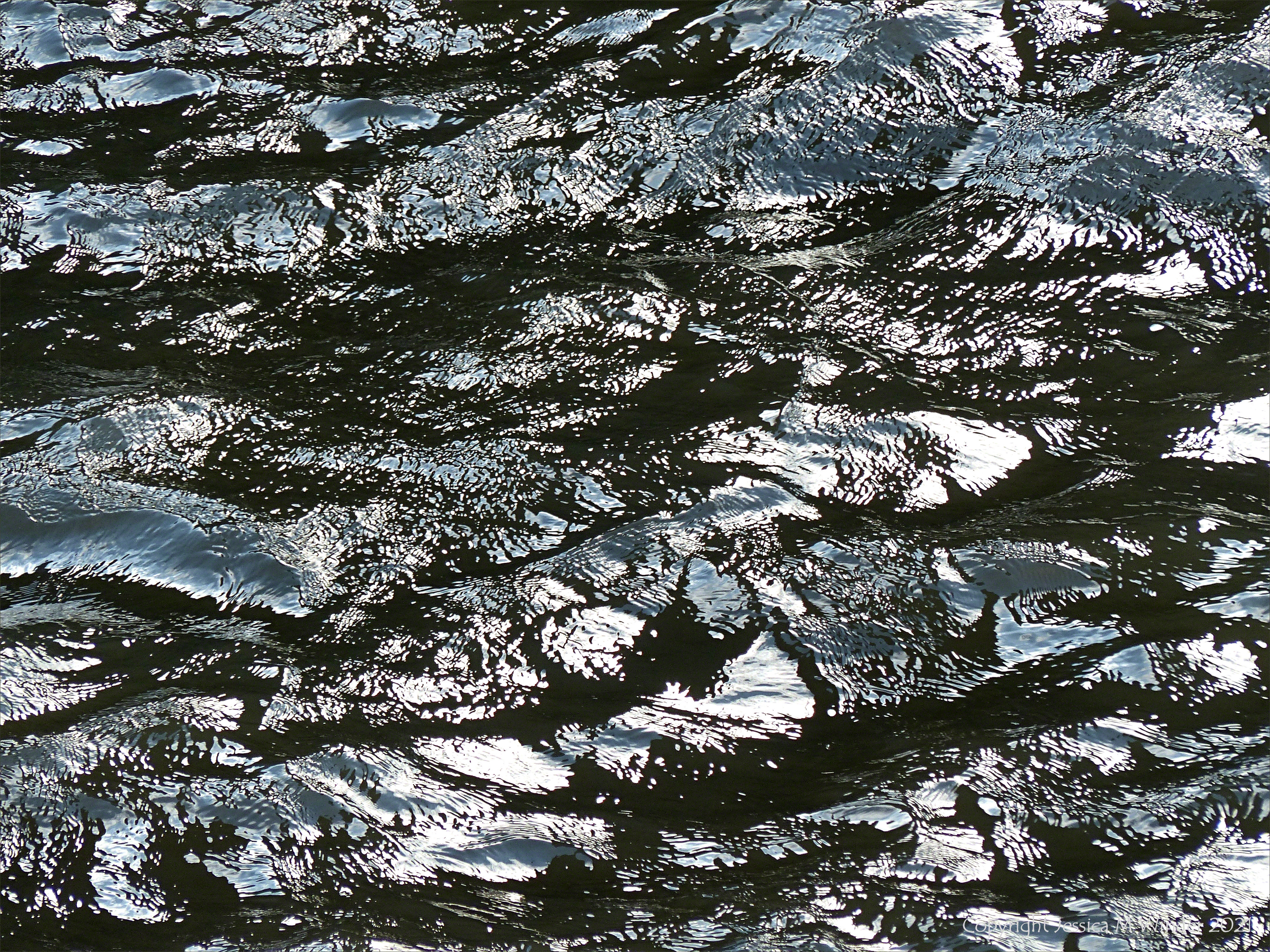 Natural abstract patterns of light reflected on flowing water