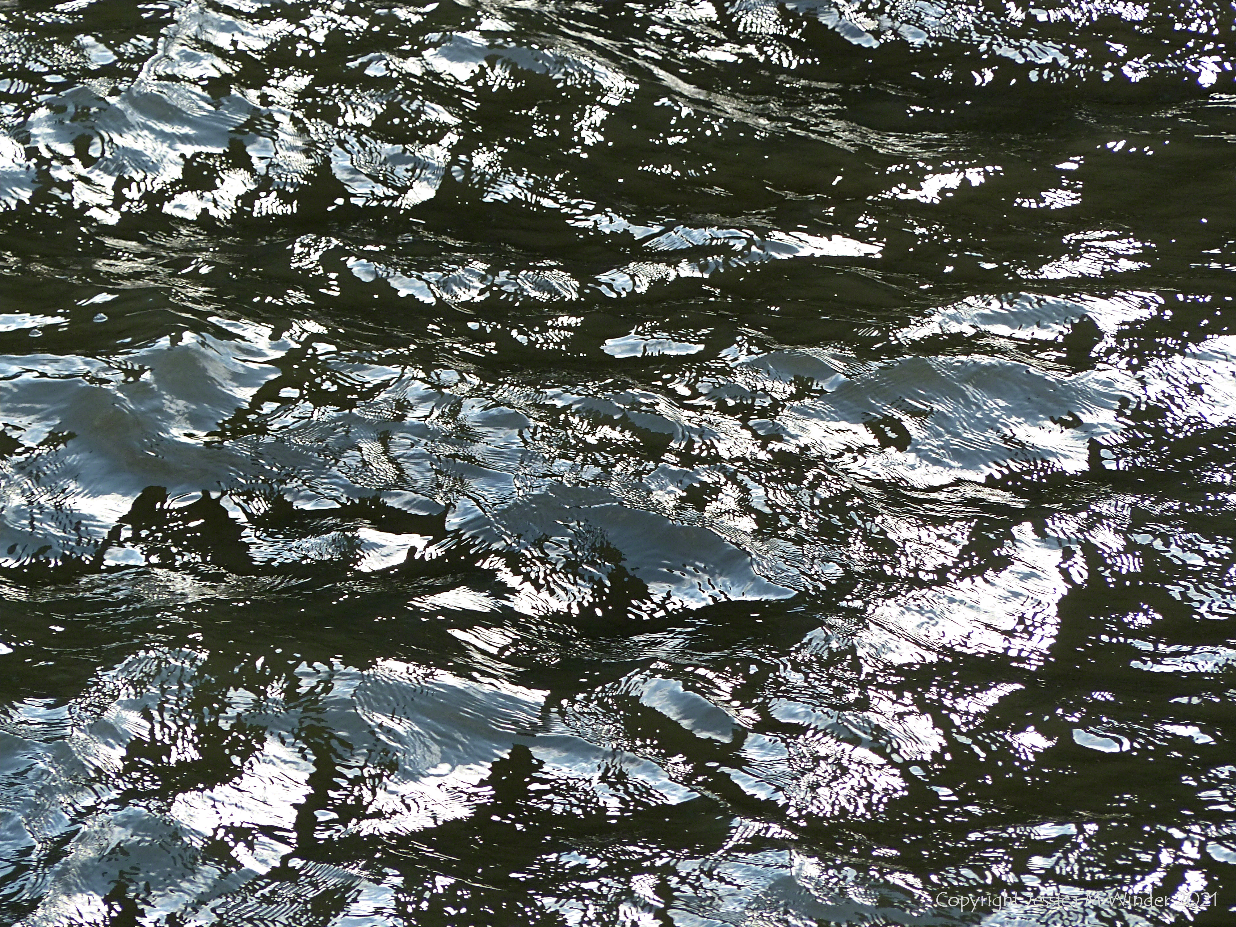 Natural abstract patterns of light reflected on the surface of deep flowing water in the tidal reaches of the River Thames in central London, October 2015