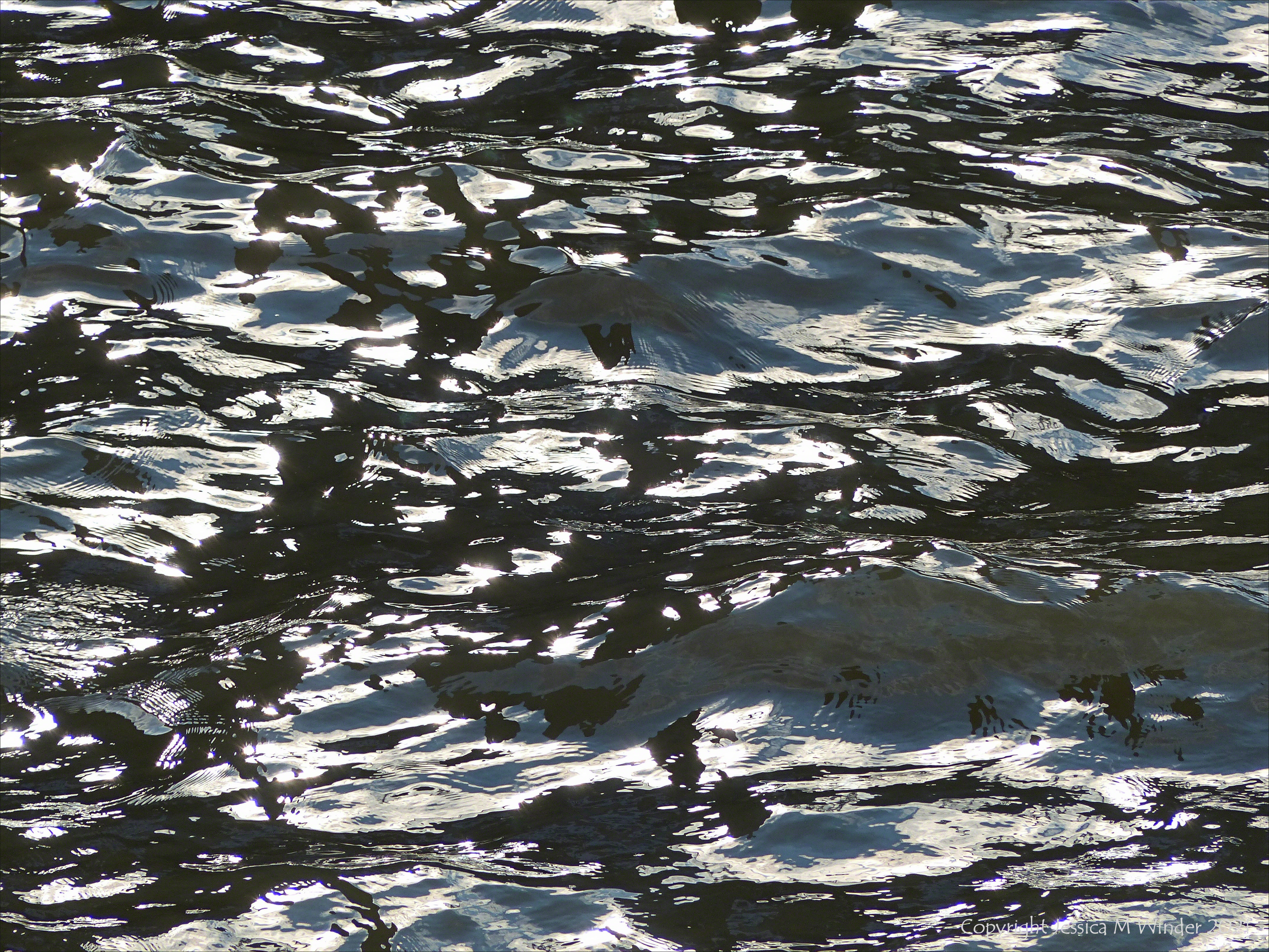 Natural abstract patterns of light reflected on the surface of deep flowing water in the tidal reaches of the River Thames in central London, October 2015
