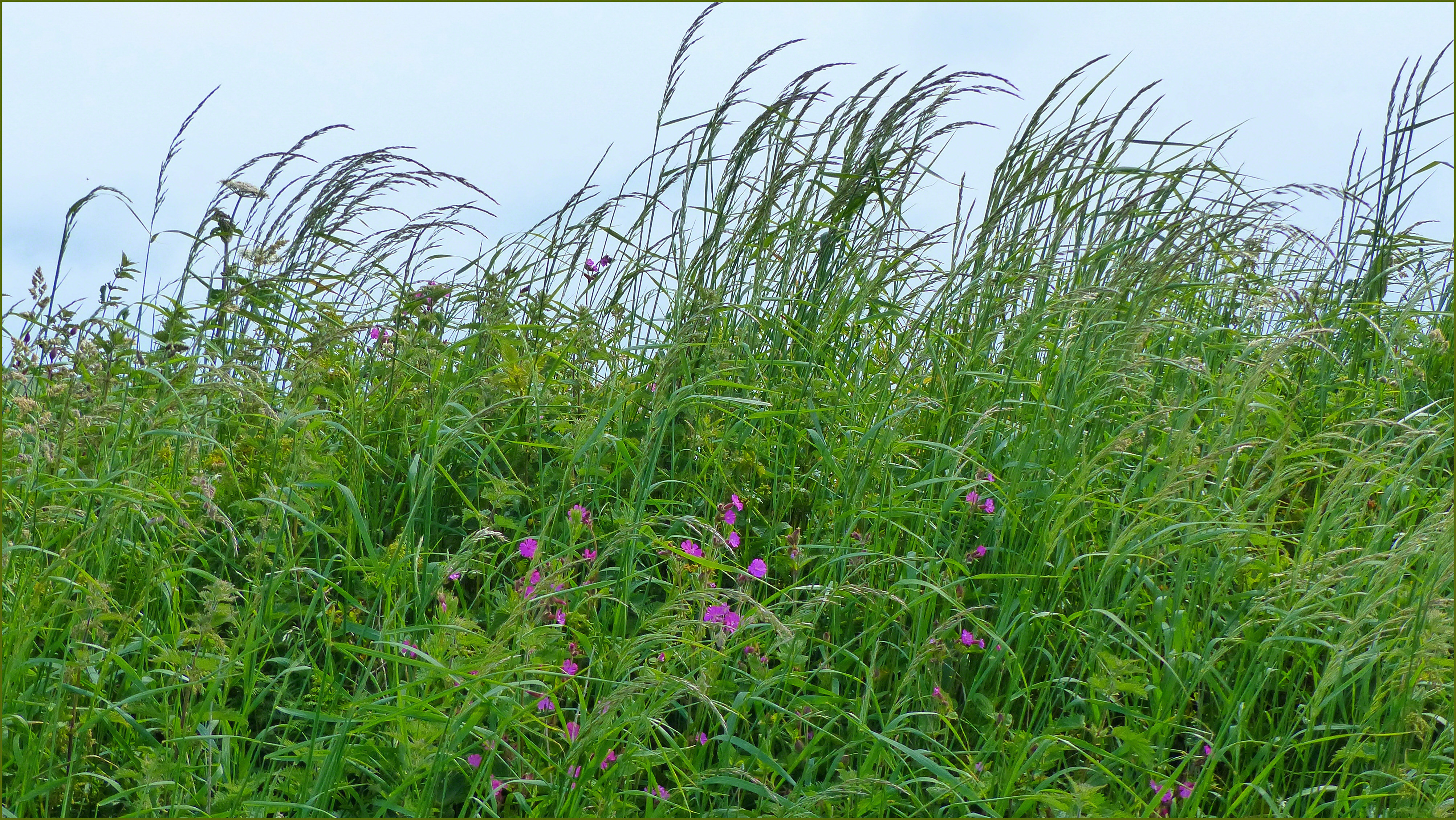 Meadows 3 – Picture from the old medieval field strip system called The Vile on the cliff top at Rhossili, Gower, South Wales, where the fields are separated by vegetated earthen embankments. Each field has a different combination of wild flowering plants and grasses. In this image the deep pink flowers among the tall grasses belong to Red Campion. I discovered yesterday on their Facebook page that National Trust Gower refer to this area as their ‘hay meadows’, so I am correct in thinking of them that way; I was unsure about that previously.