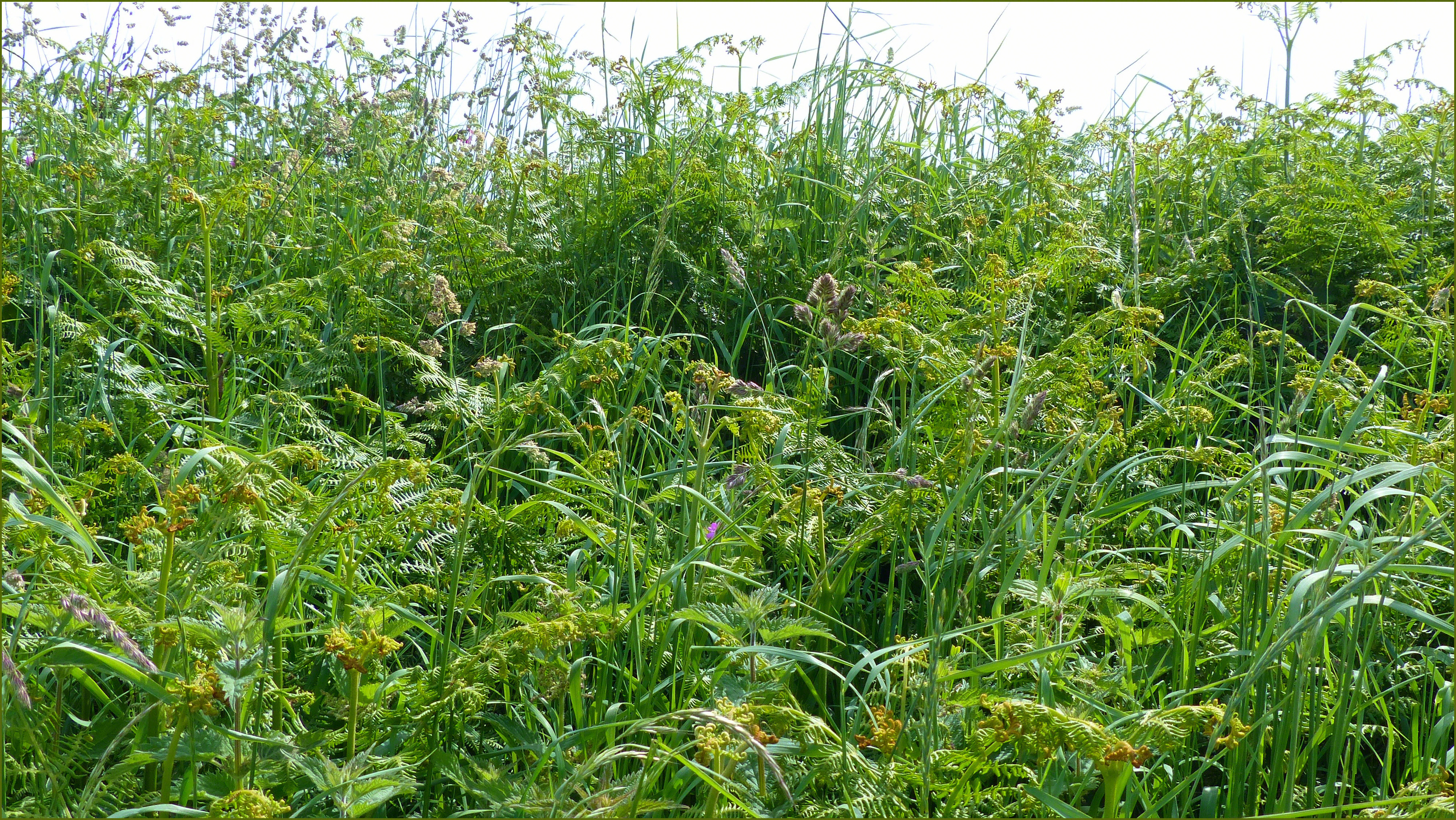 In the image above, of one of the vegetated embankments, it is new growth of bracken (which was probably already growing there) that dominates amongst the grass. I liked the way the tips of the fronds were unfurling from their tight knots. 17 June 2021. (Click on pictures to enlarge).